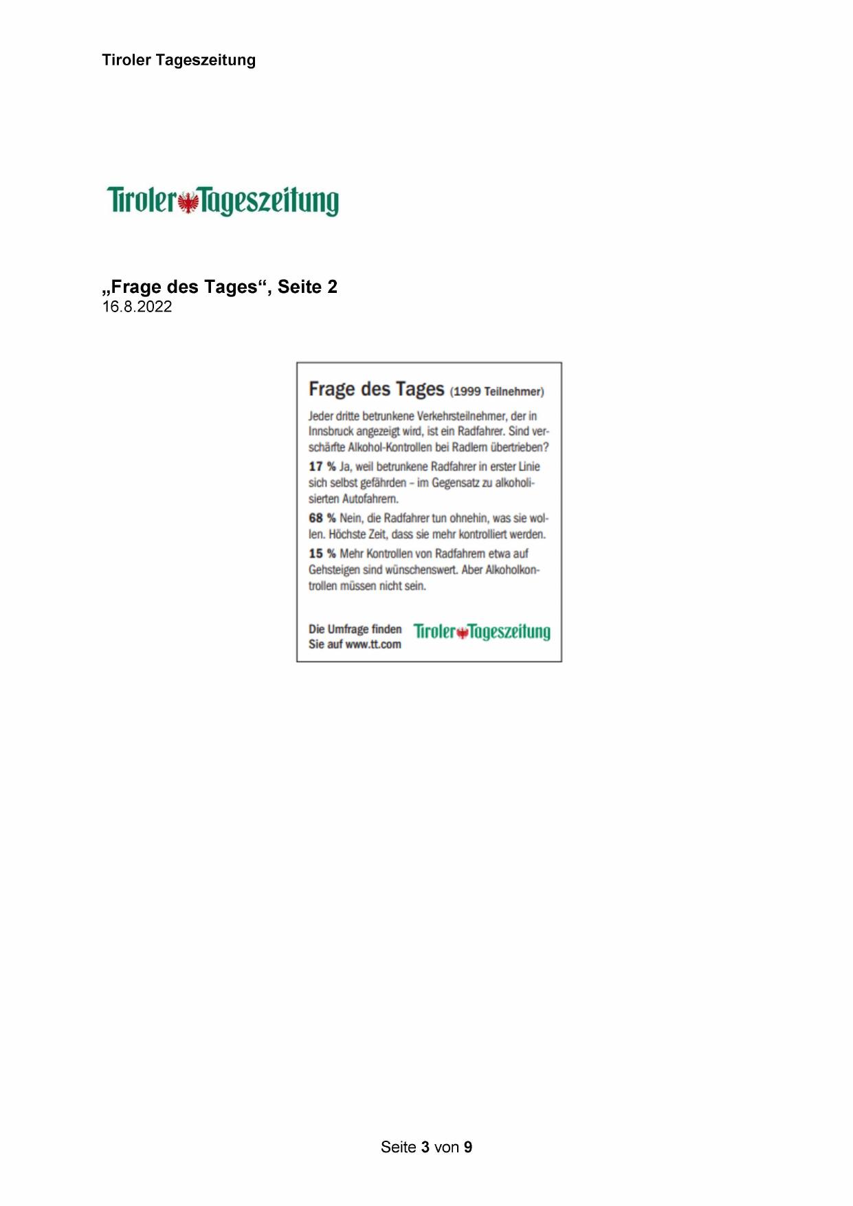 Die Umfrage finden TirgjerwTageszeitung