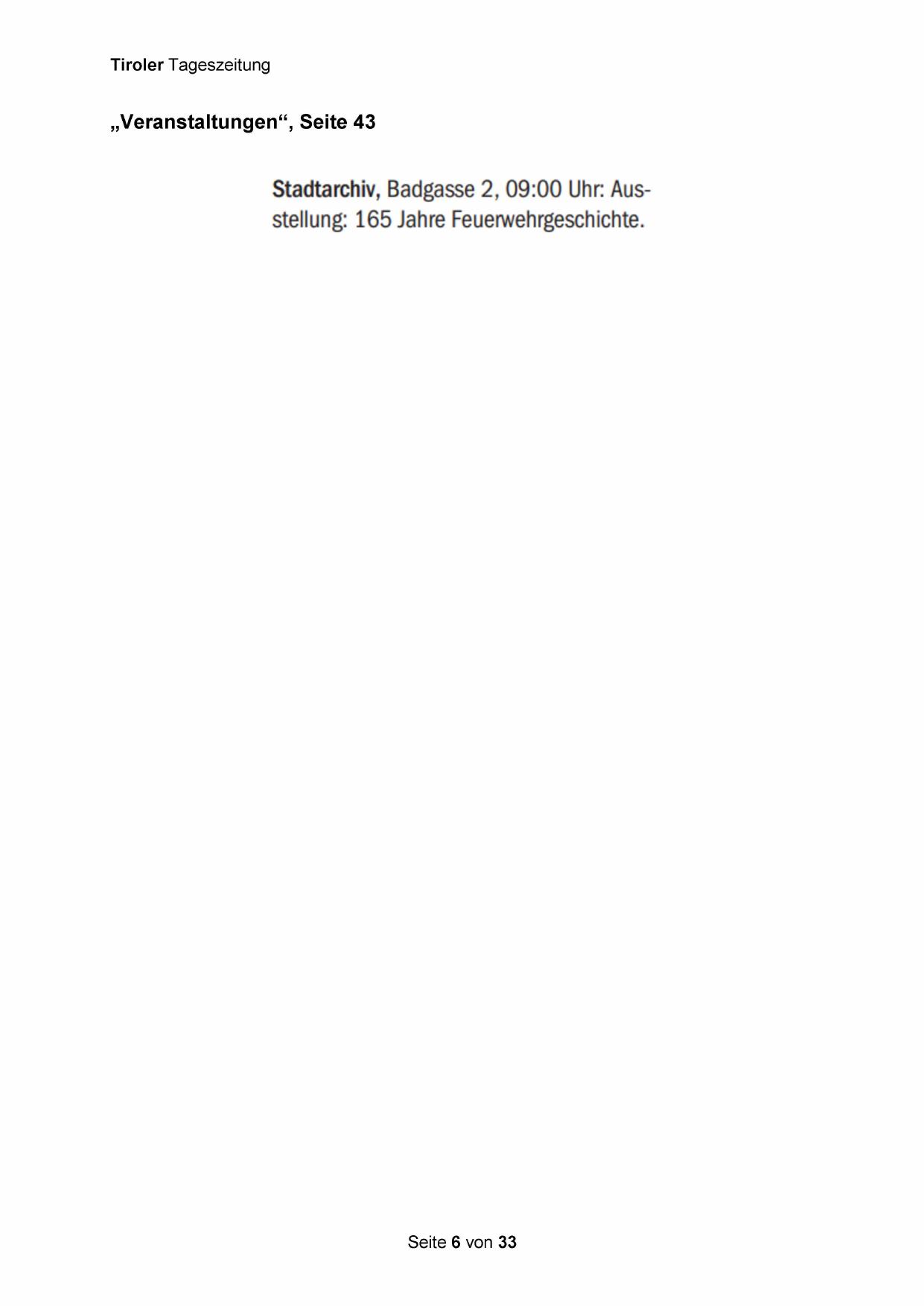 Stadtarchiv, Badgasse 2, 09:00 Uhr: Ausstellung: 165 Jahre Feuerwehrgeschichte.