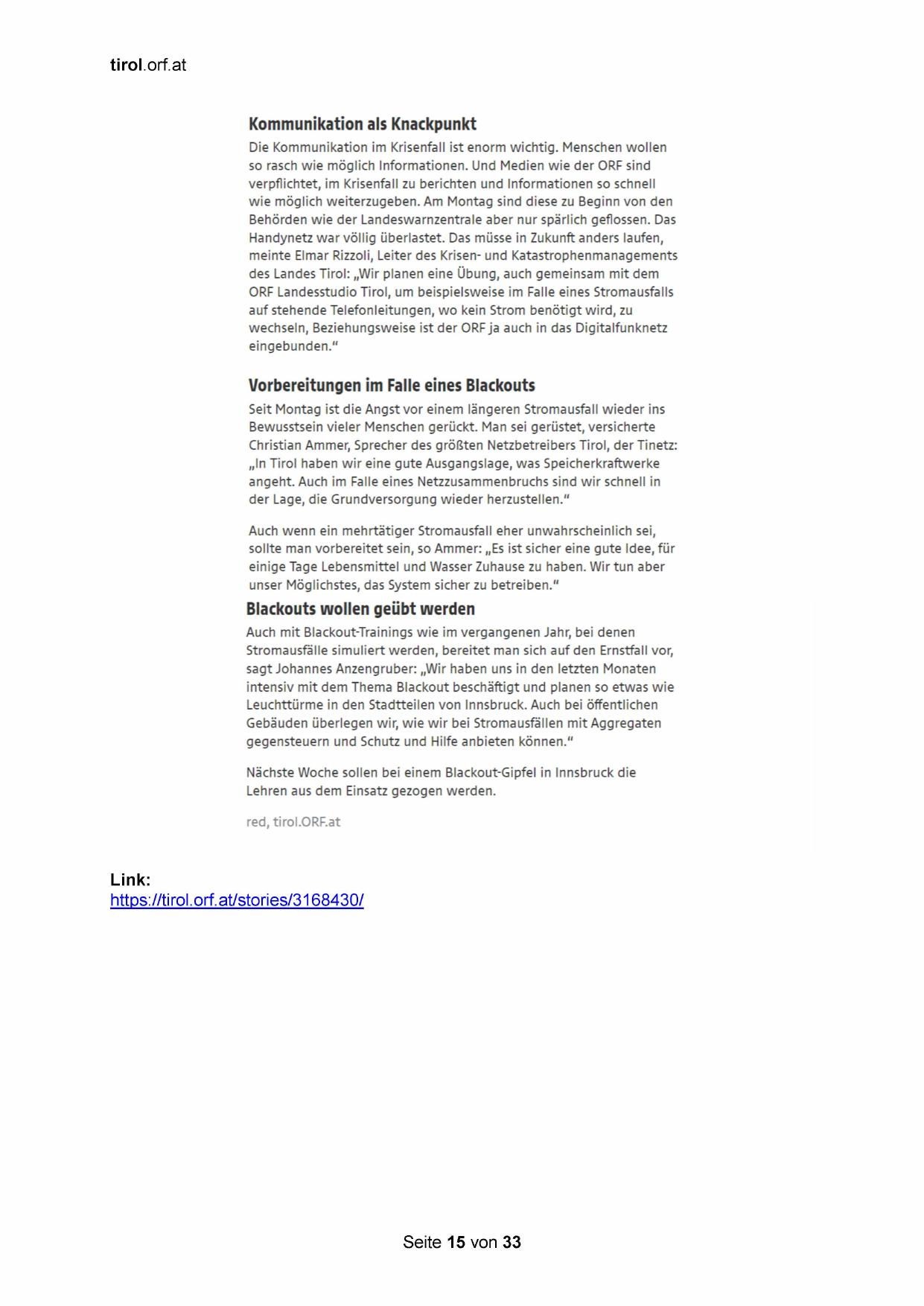 des Landes Tirol: „Wir planen eine Übung, auch gemeinsam mit dem