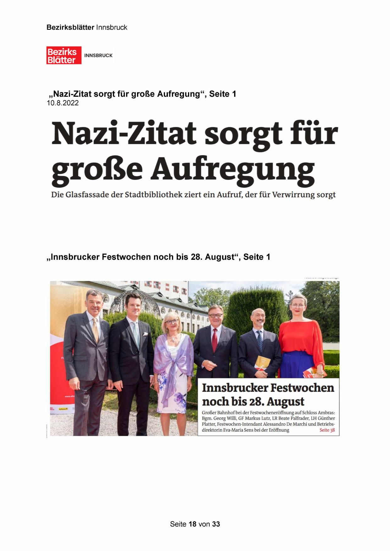 „Innsbrucker Festwochen noch bis 28. August“, Seite 1