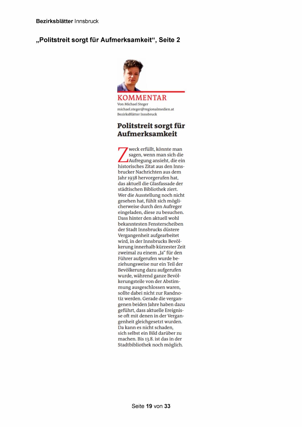 historisches Zitat aus den Innsbrucker Nachrichten aus dem