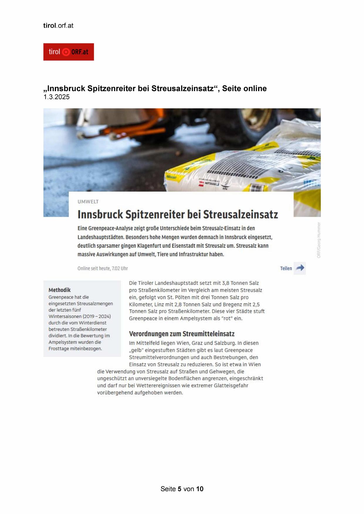 „Innsbruck Spitzenreiter bei Streusalzeinsatz“, Seite online