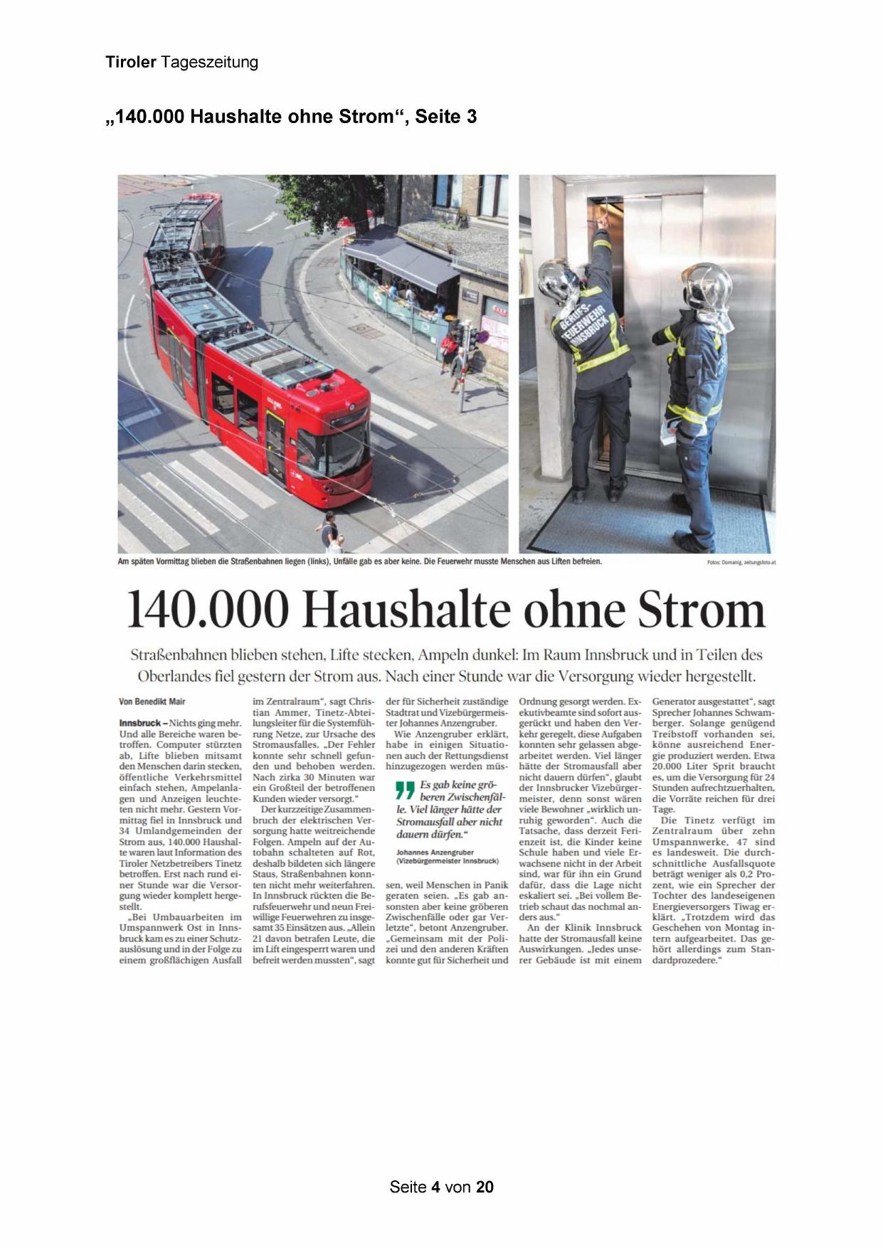 einfach stehen, Ampelanlagen und Anzeigen leuchteten nicht mehr. Gestern Vormittag fiel in Innsbruck und