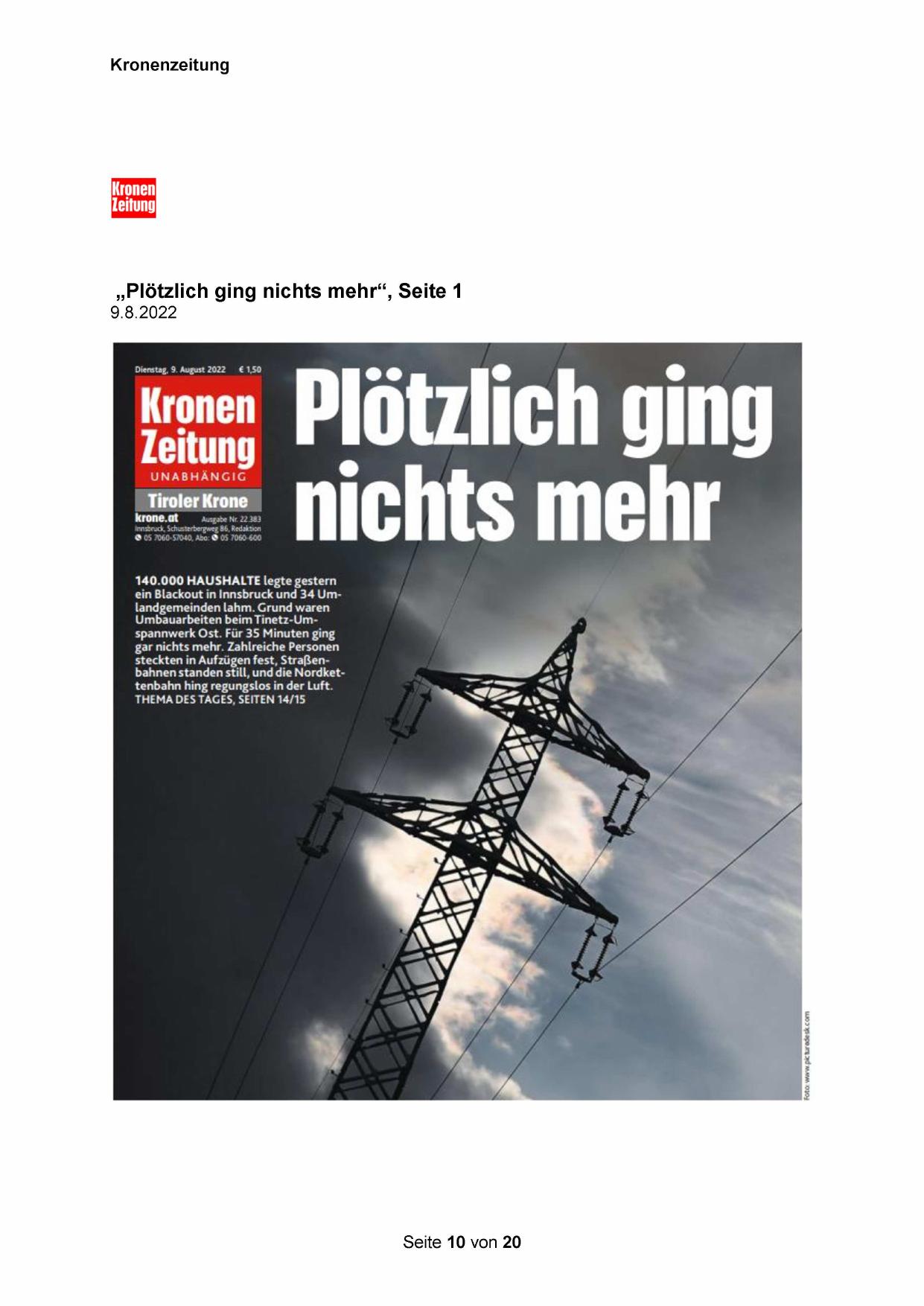ein Blackout in Innsbruck und 34 Umlandgemeinden lahm. Grund waren