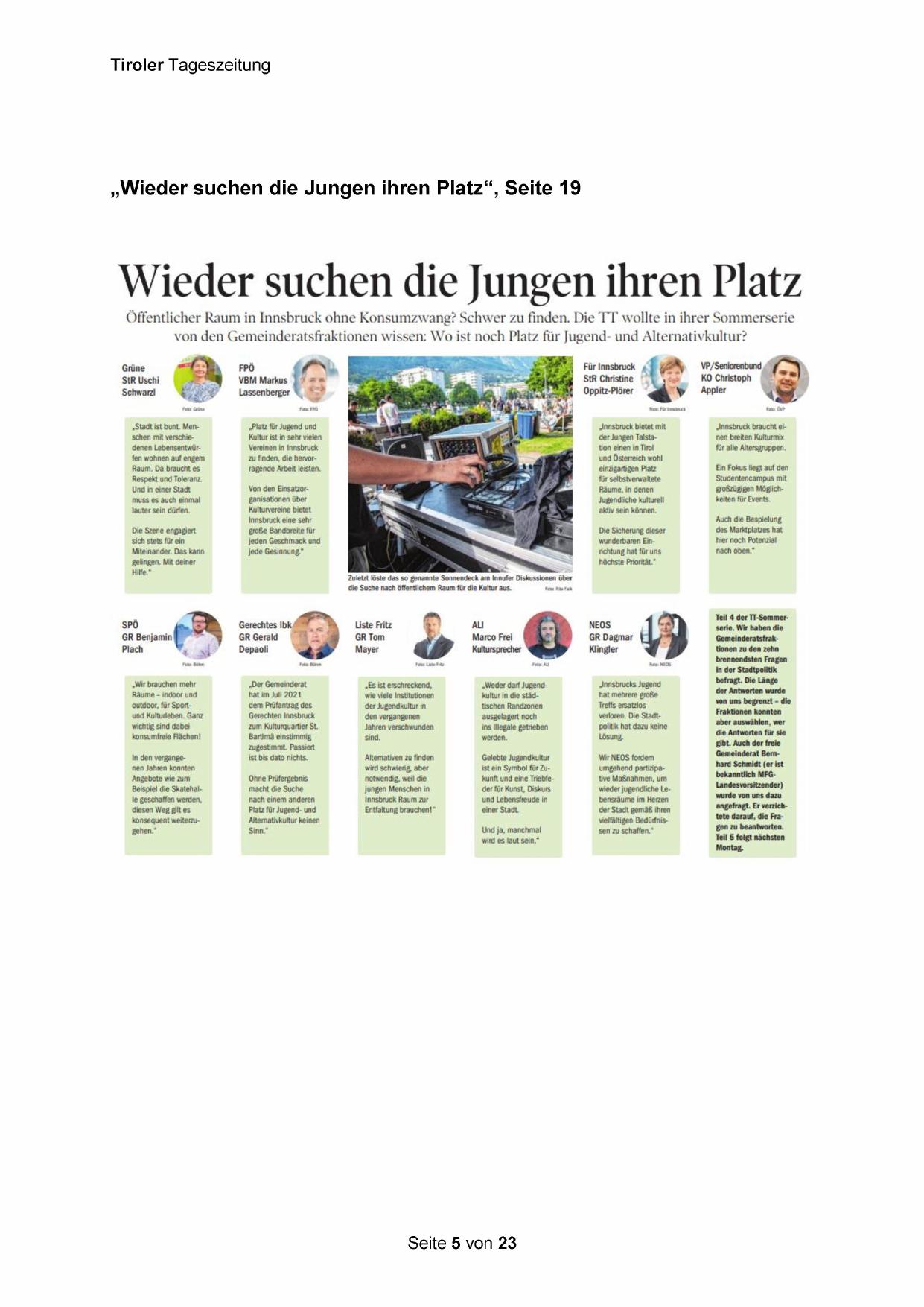 „Wir brauchen mehr „Es ist erschreckend, „Weder darf Jugend- „Innsbrucks Jugend n