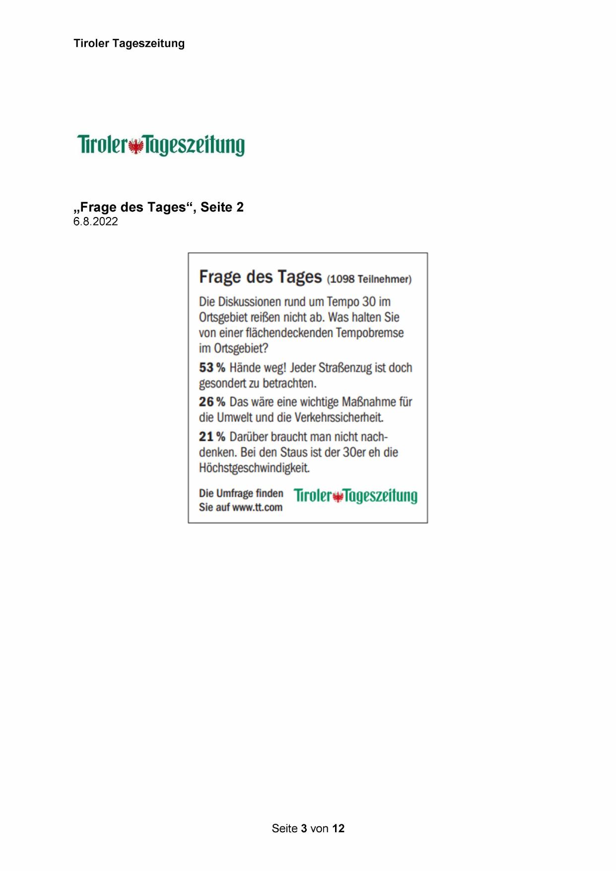 Die Umfrage finden TirolerTageszeitung