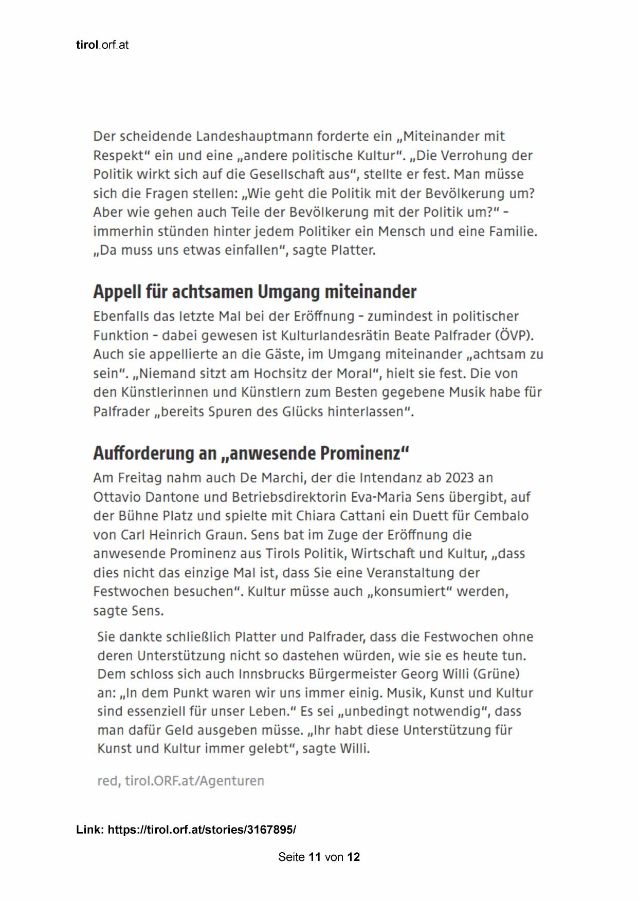 Sie dankte schließlich Platter und Palfrader, dass die Festwochen ohne