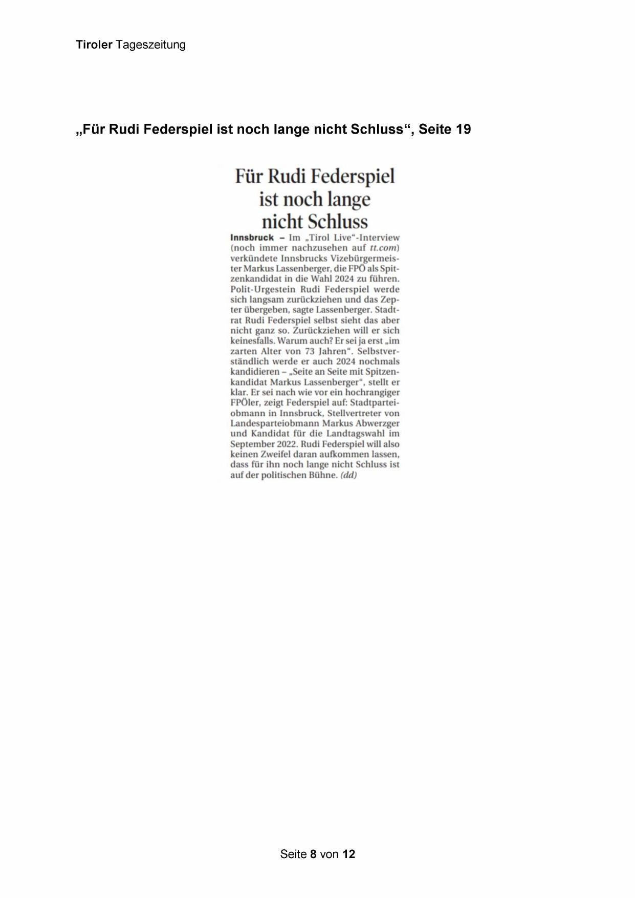„Für Rudi Federspiel ist noch lange nicht Schluss“, Seite 19