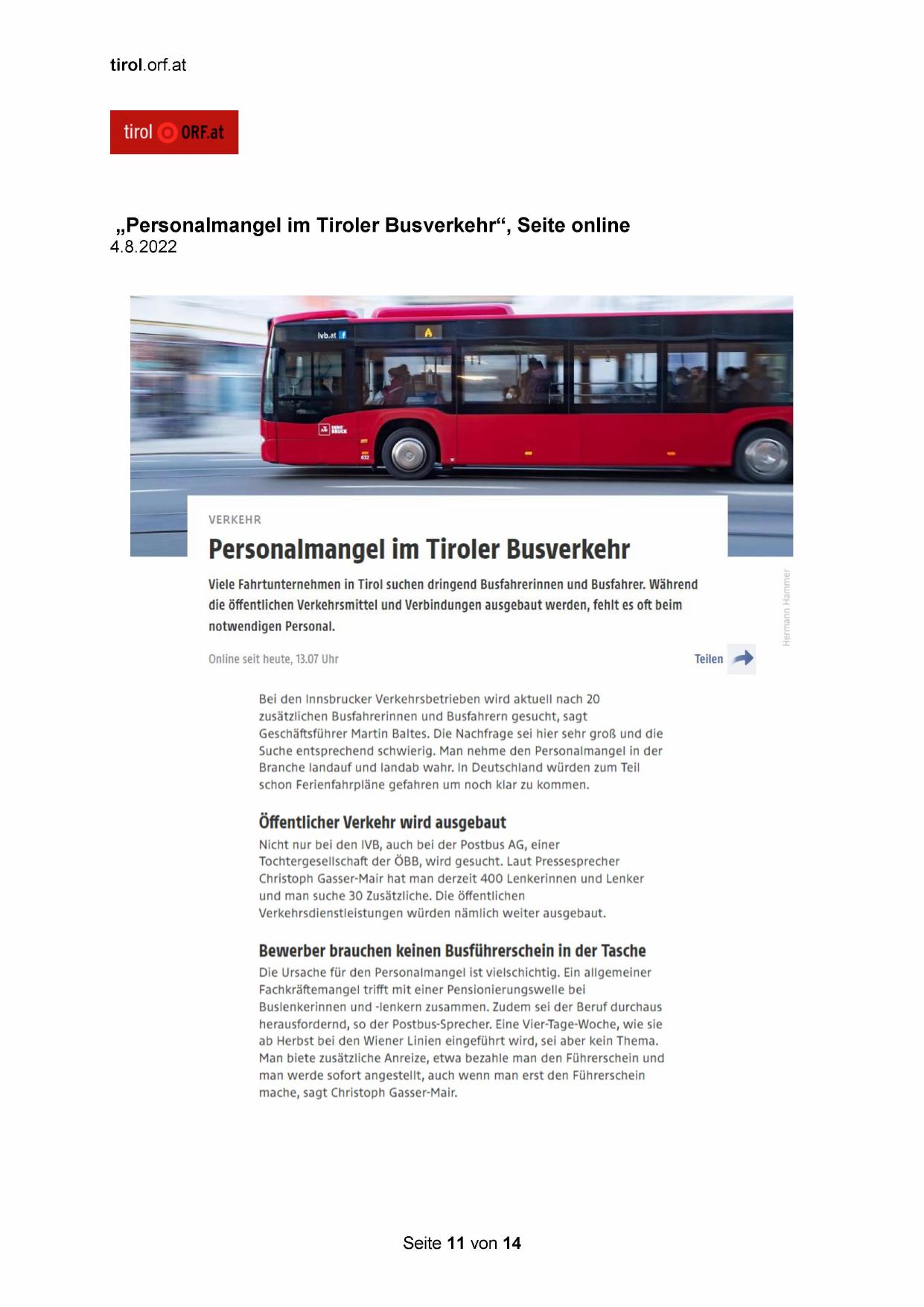 „Personalmangel im Tiroler Busverkehr“, Seite online