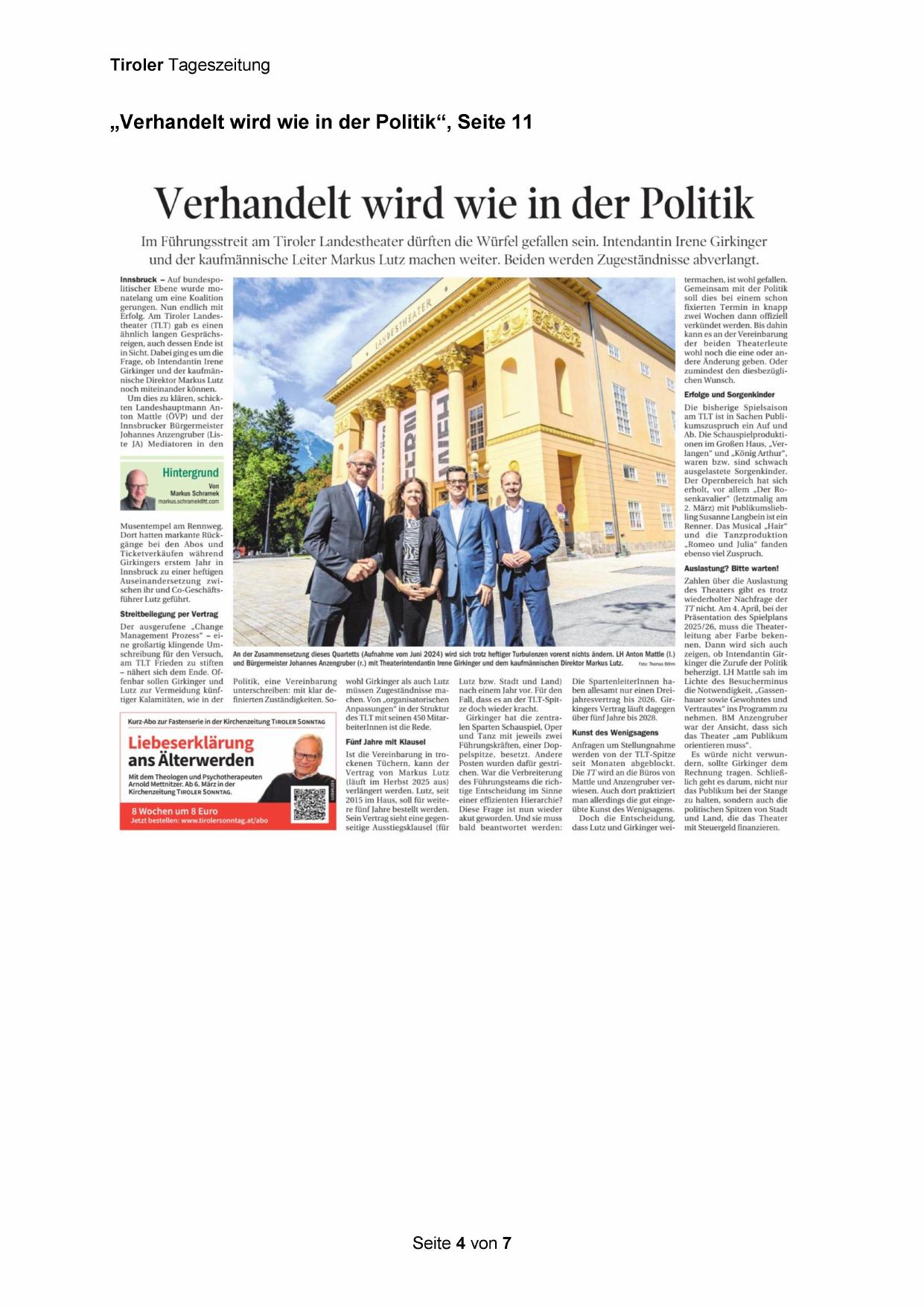 Die SpartenleiterInnen haben allesamt nur einen Dreijahresvertrag bis 2026. Girkingers Vertrag läuft dagegen