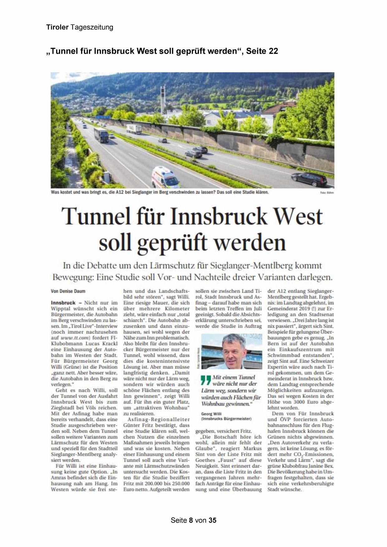 „Tunnel für Innsbruck West soll geprüft werden“, Seite 22
