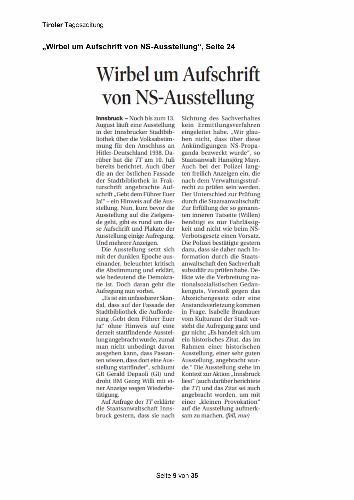 „Wirbel um Aufschrift von NS-Ausstellung“, Seite 24