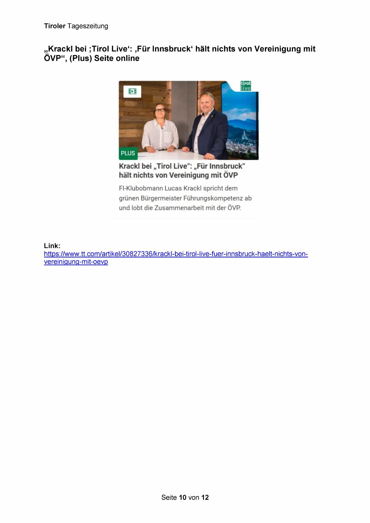 „Krackl bei ;Tirol Live‘: ‚Für Innsbruck‘ hält nichts von Vereinigung mit