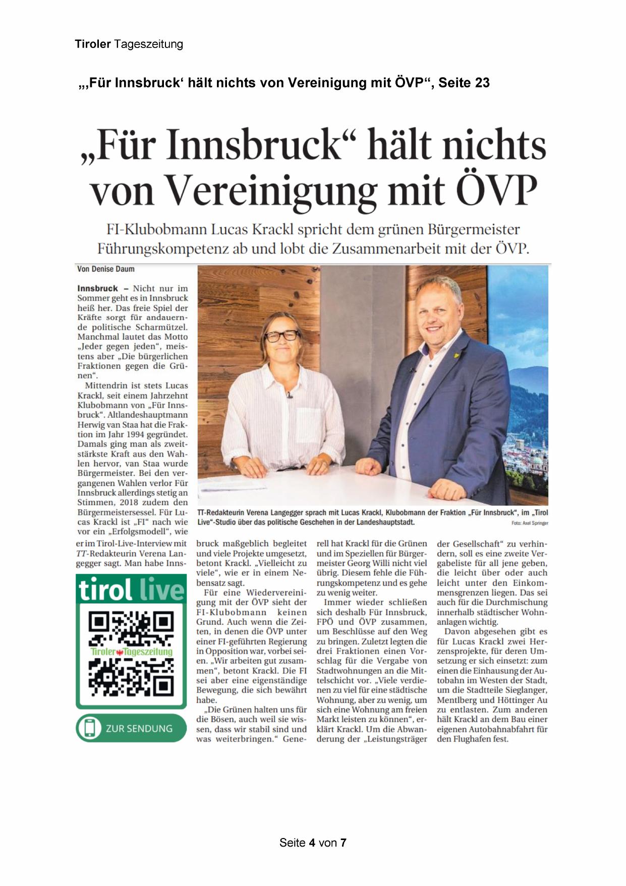 „„‚Für Innsbruck‘ hält nichts von Vereinigung mit ÖVP“, Seite 23