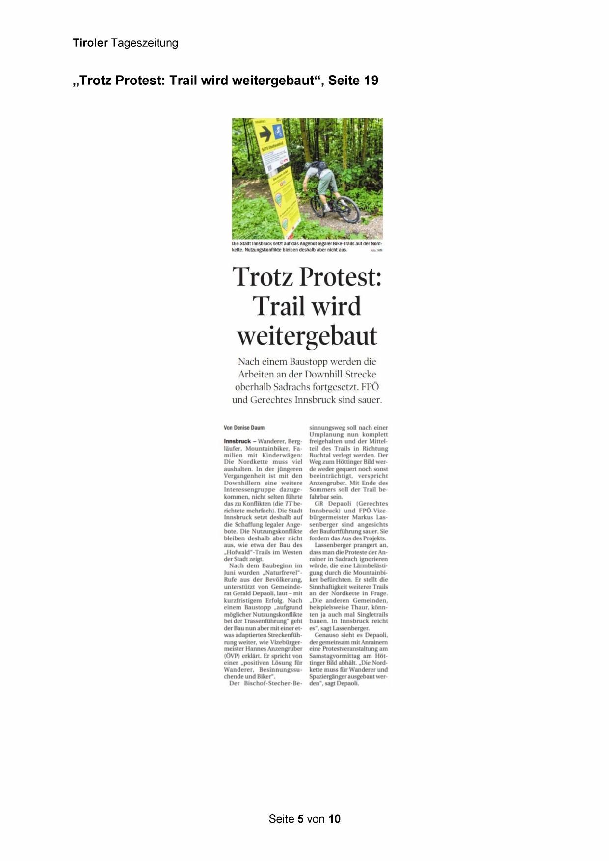 „Trotz Protest: Trail wird weitergebaut“, Seite 19