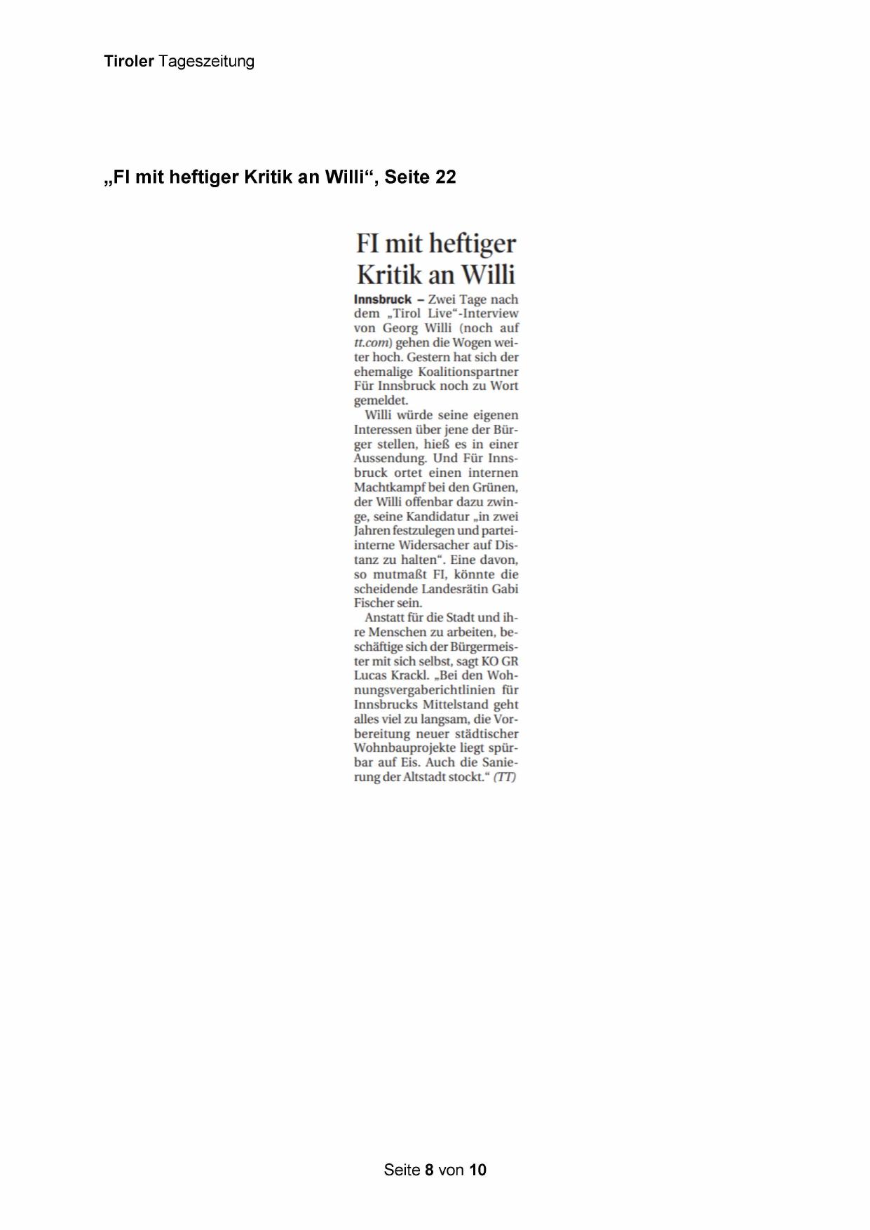 „FI mit heftiger Kritik an Willi“, Seite 22
