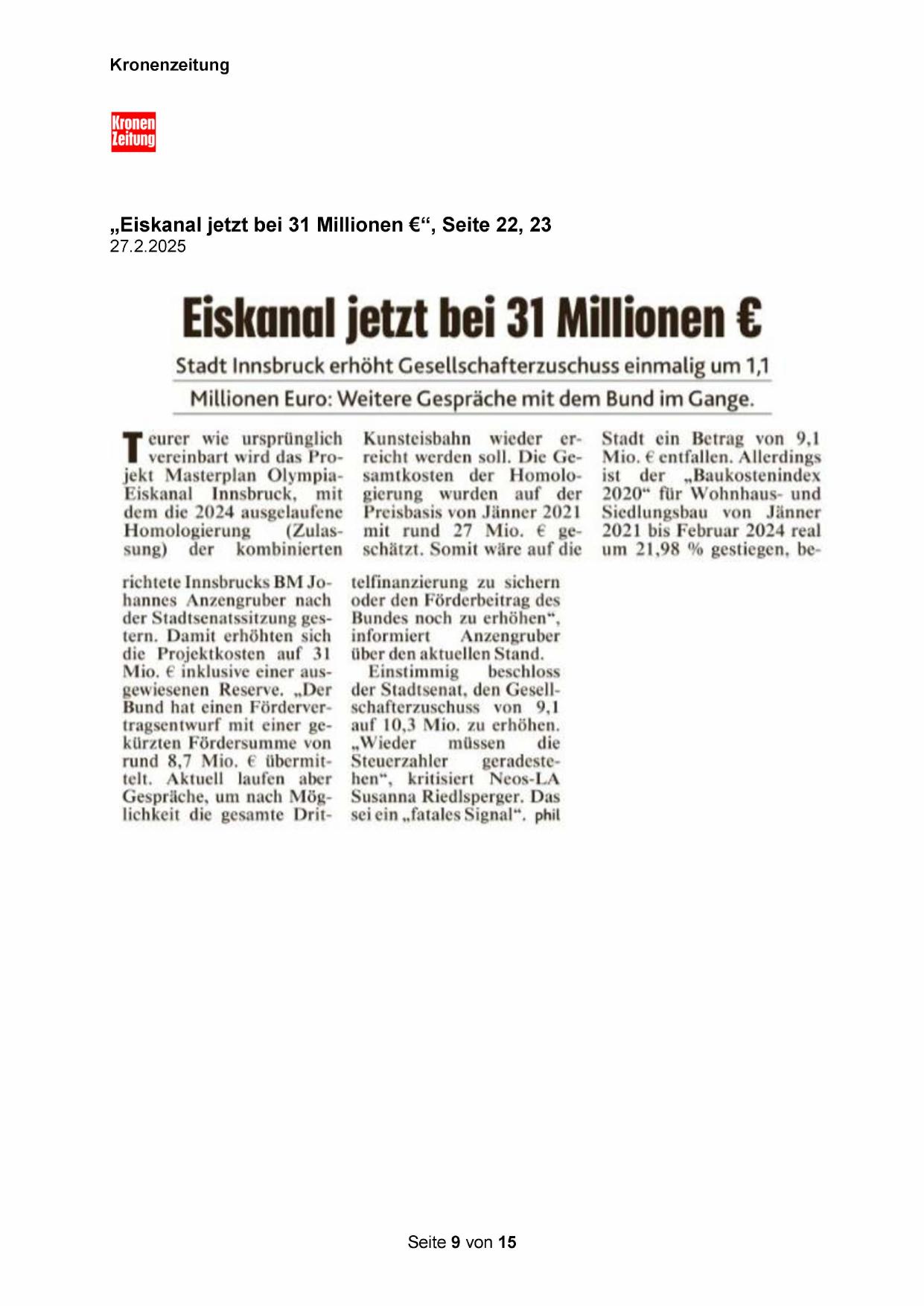 „Eiskanal jetzt bei 31 Millionen €“, Seite 22, 23