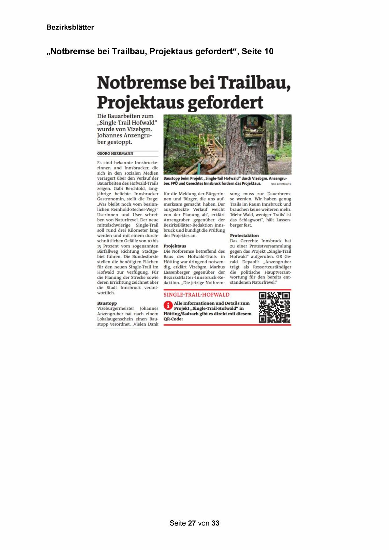 „Notbremse bei Trailbau, Projektaus gefordert‘“, Seite 10