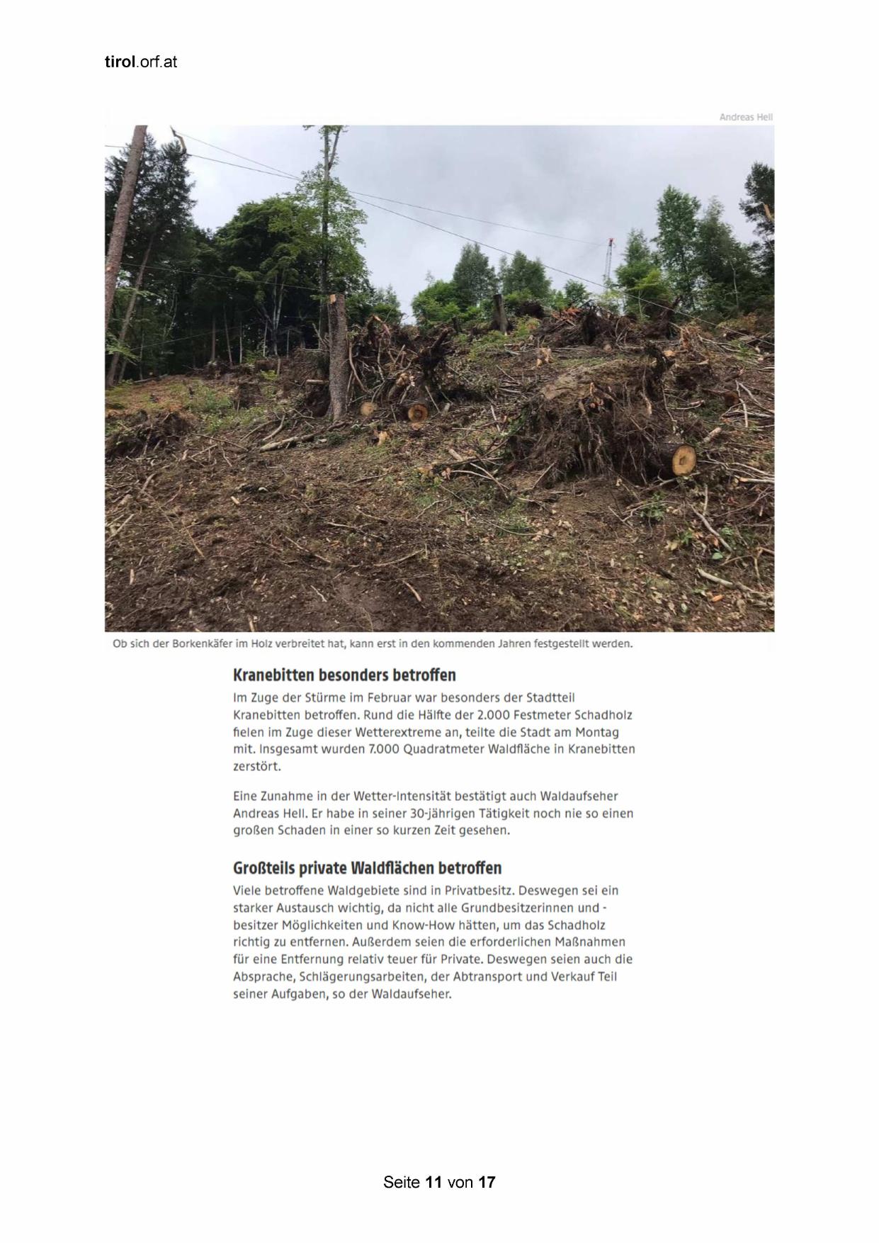 Kranebitten betroffen. Rund die Hälfte der 2.000 Festmeter Schadholz