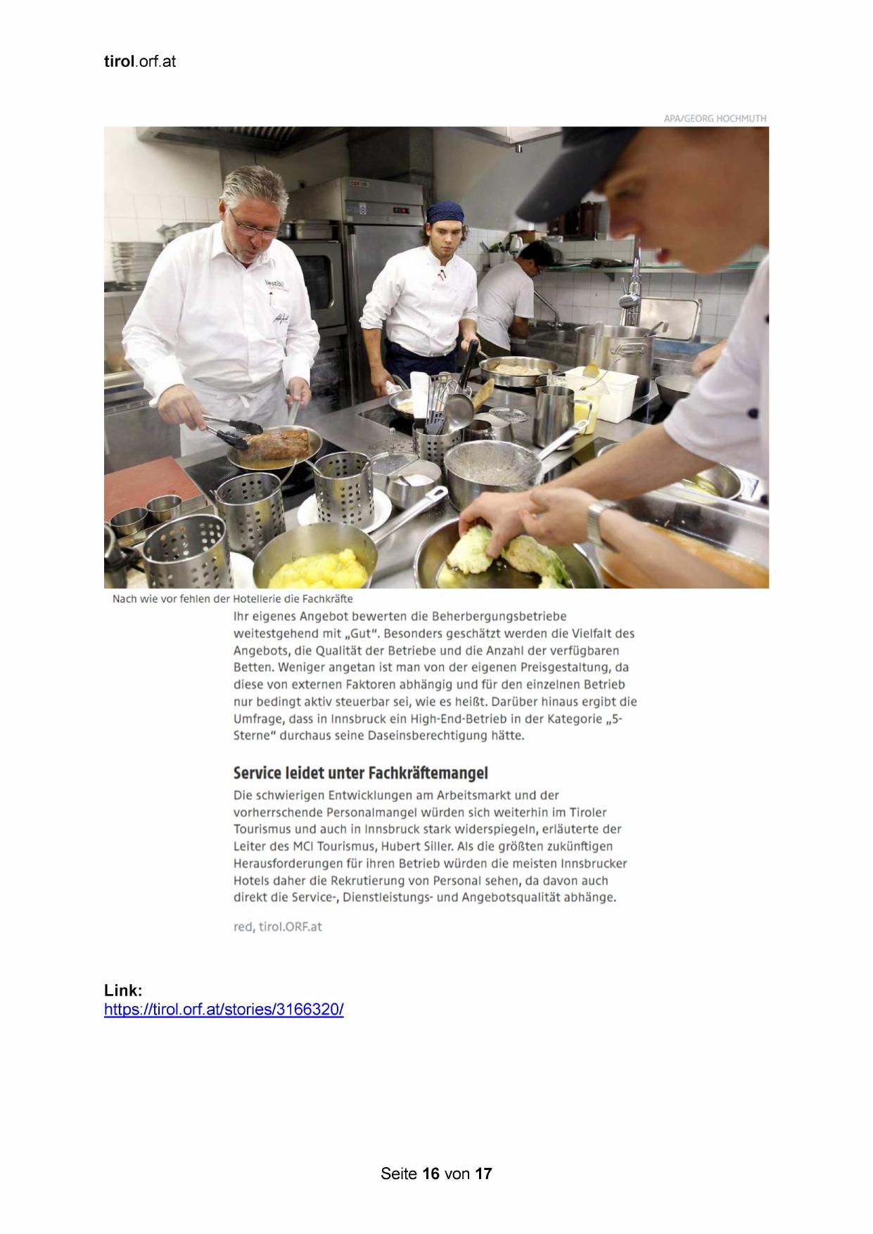Umfrage, dass in Innsbruck ein High-End-Betrieb in der Kategorie „5-