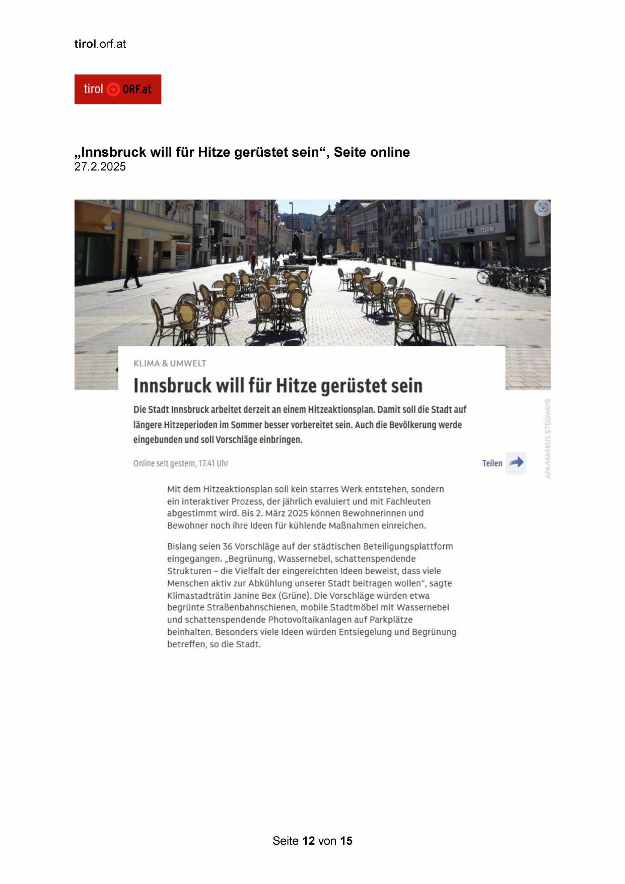 „Innsbruck will für Hitze gerüstet sein“, Seite online