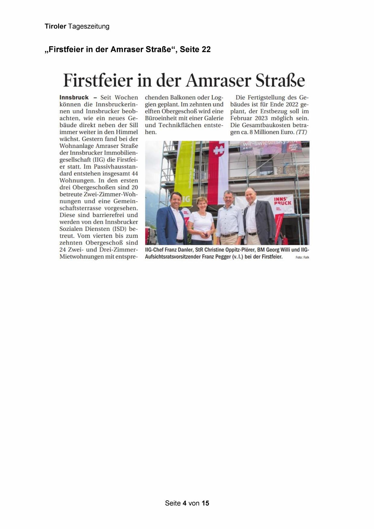 der Innsbrucker Immobiliengesellschaft (IIG) die Firstfeier statt. Im Passivhausstandard entstehen insgesamt 44
