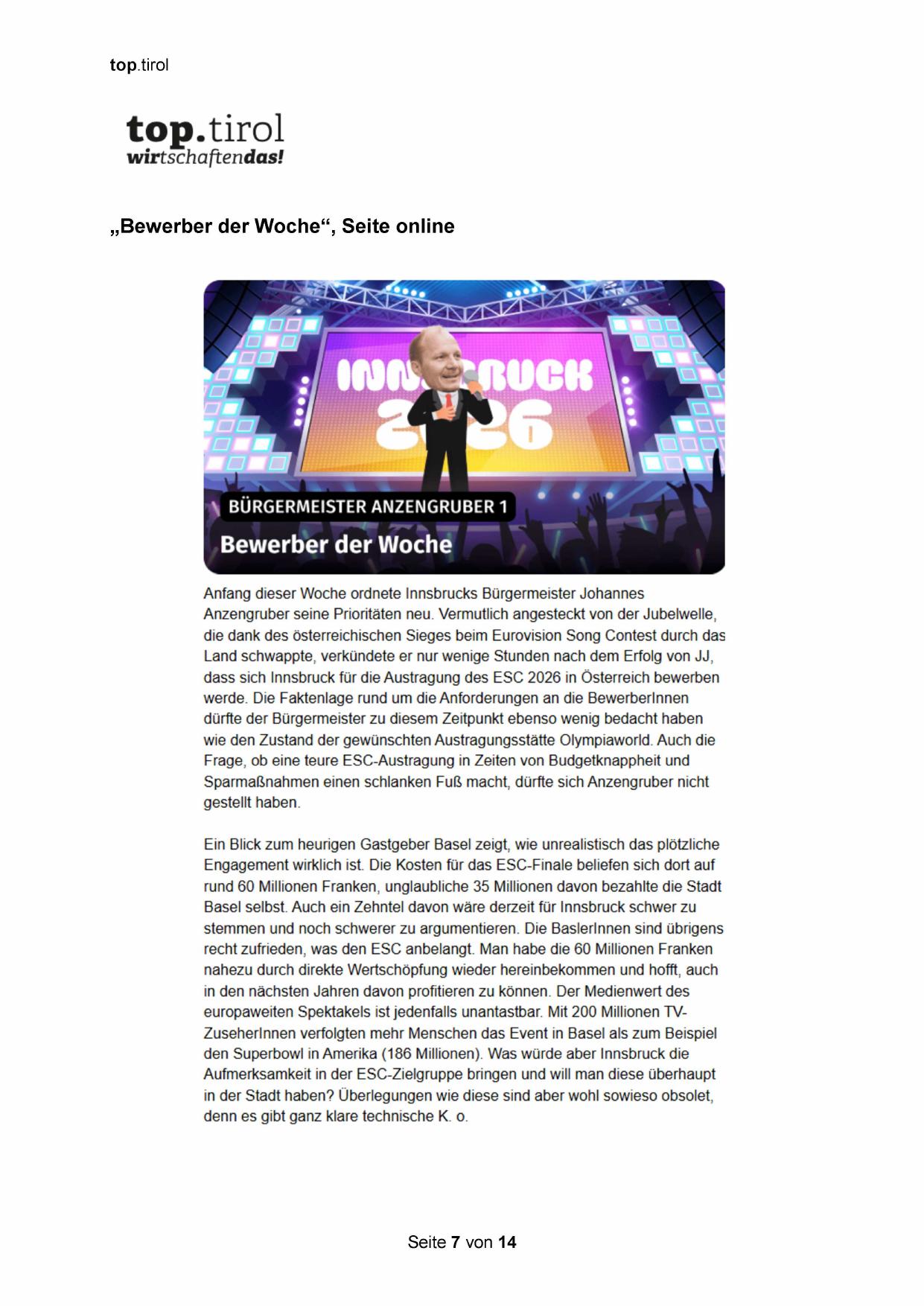 dass sich Innsbruck für die Austragung des ESC 2026 in Österreich bewerben