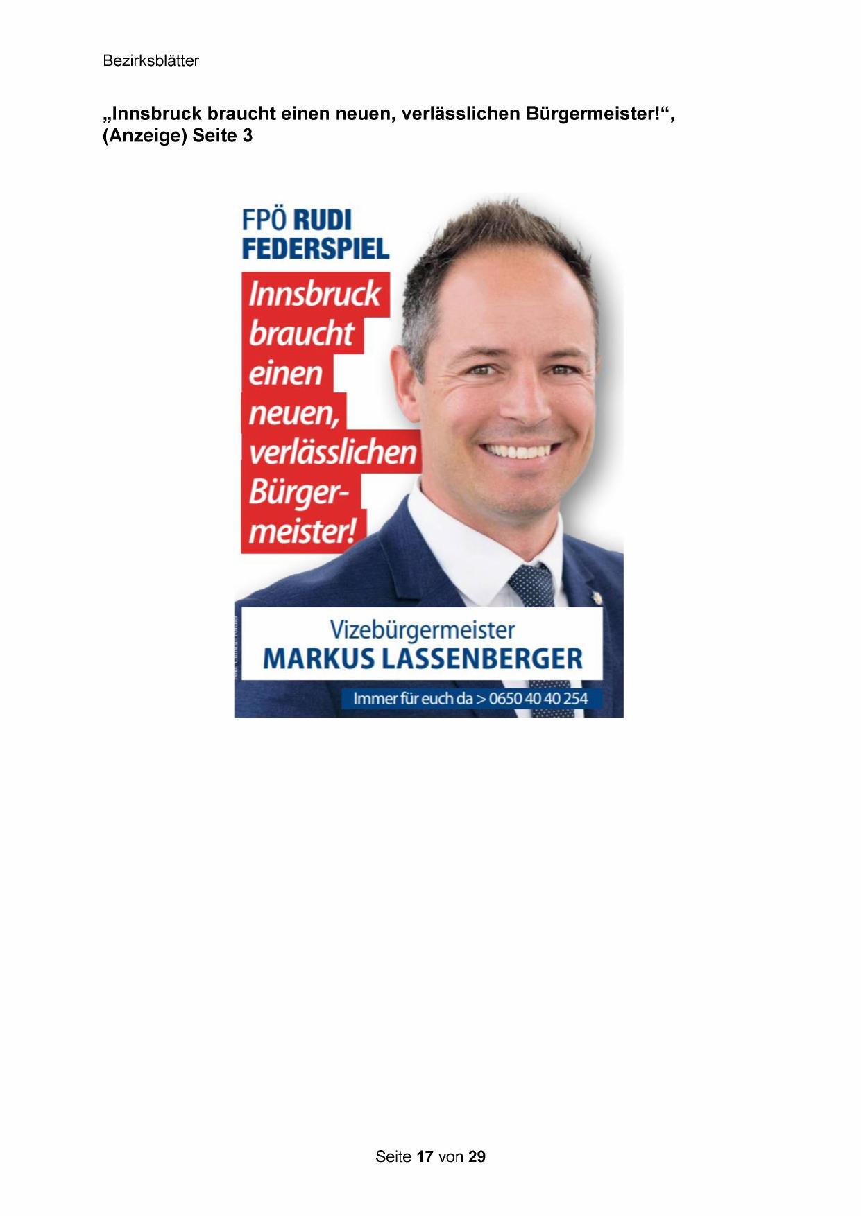 „Innsbruck braucht einen neuen, verlässlichen Bürgermeister!“,