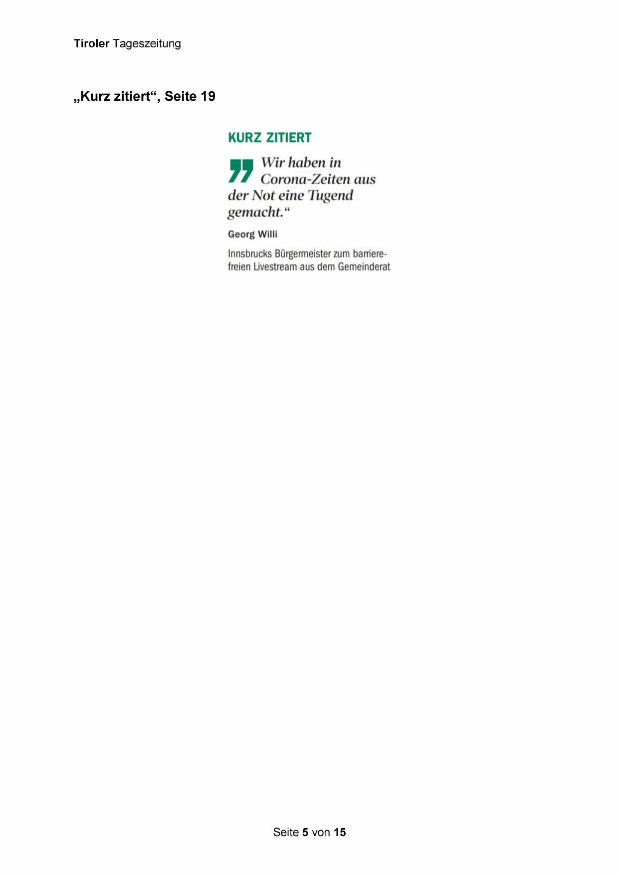 Innsbrucks Bürgermeister zum barrierefreien Livestream aus dem Gemeinderat