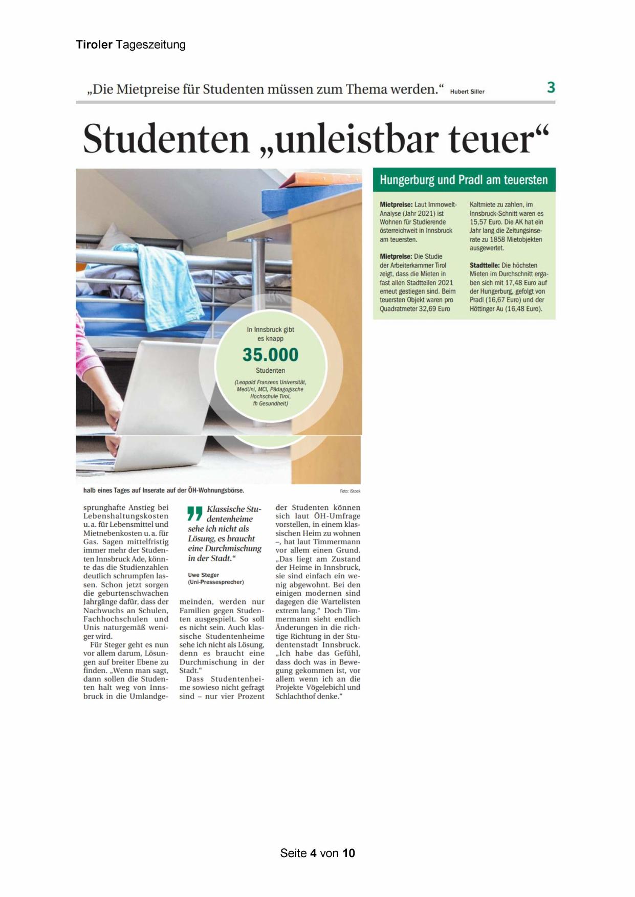 dann sollen die Studenten halt weg von Innsbruck in die Umlandge-