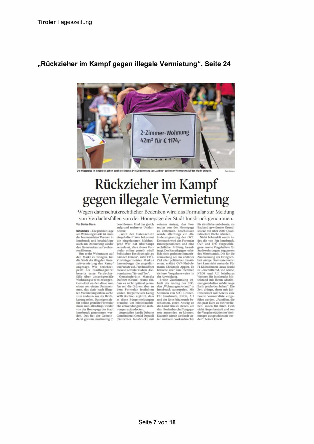 Nicht behandelt wurde indes die von Für Innsbruck,