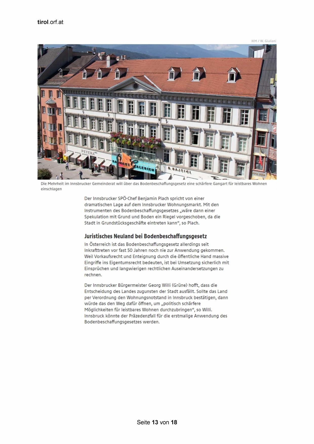 dramatischen Lage auf dem Innsbrucker Wohnungsmarkt. Mit den