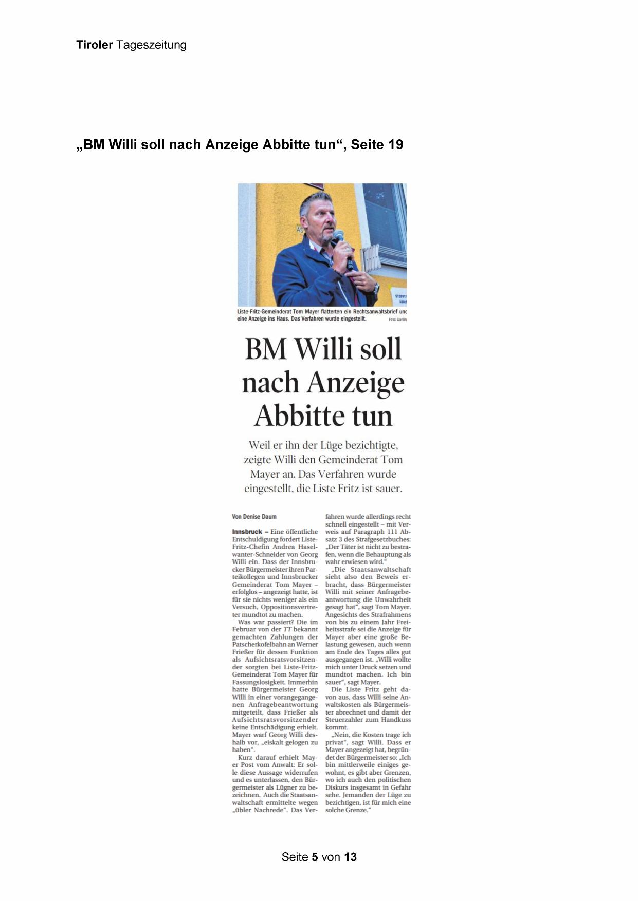 „BM Willi soll nach Anzeige Abbitte tun“, Seite 19