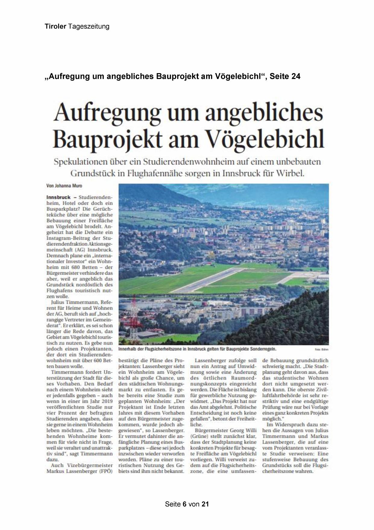 „Aufregung um angebliches Bauprojekt am Vögelebichl“, Seite 24