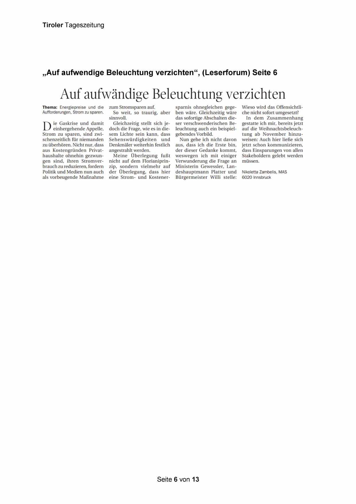 „Auf aufwendige Beleuchtung verzichten“, (Leserforum) Seite 6