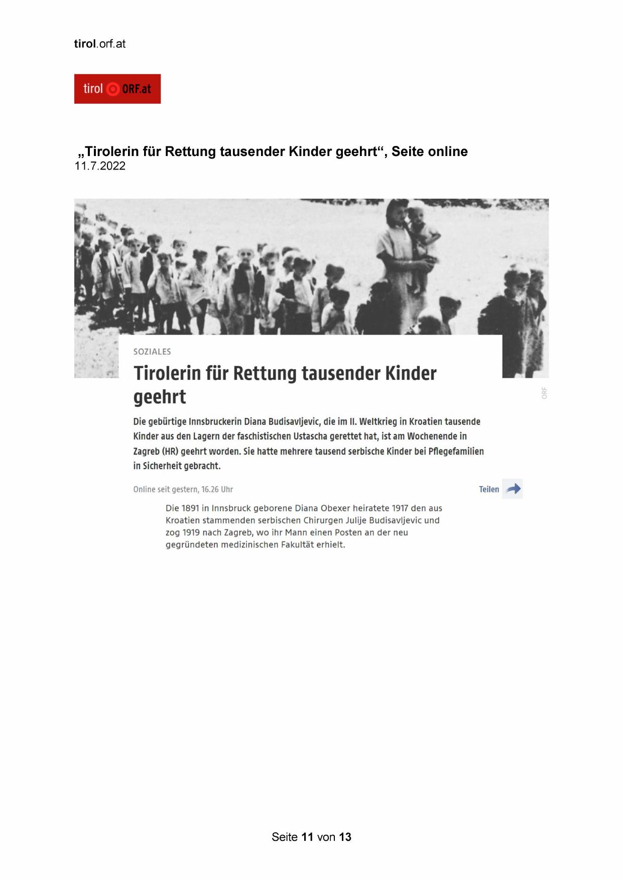 „Tirolerin für Rettung tausender Kinder geehrt“, Seite online