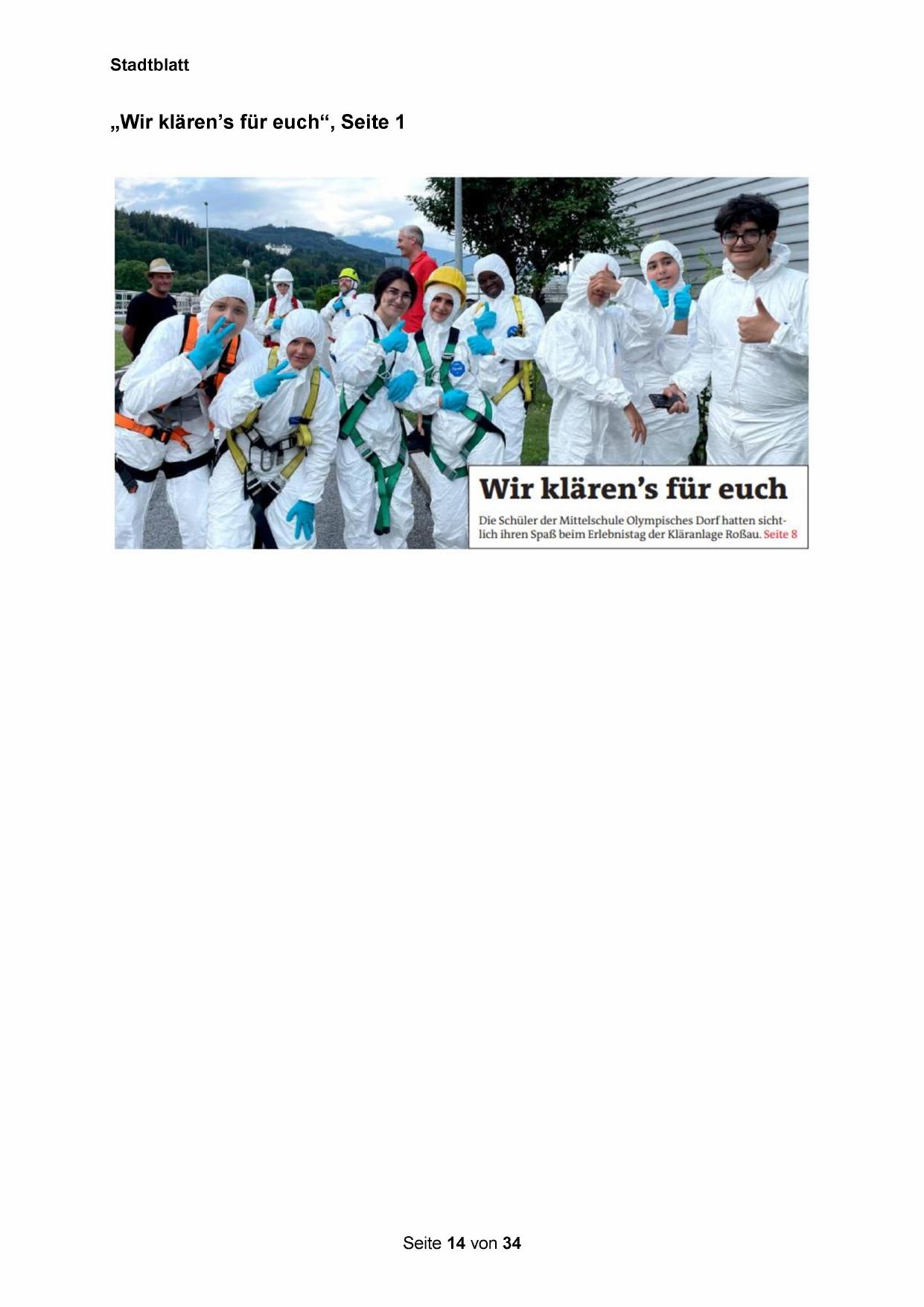 Die Schüler der Mittelschule Olympisches Dorf hatten sichtlich ihren Spaß beim Erlebnistag der Kläranlage Roßau. Seite 8