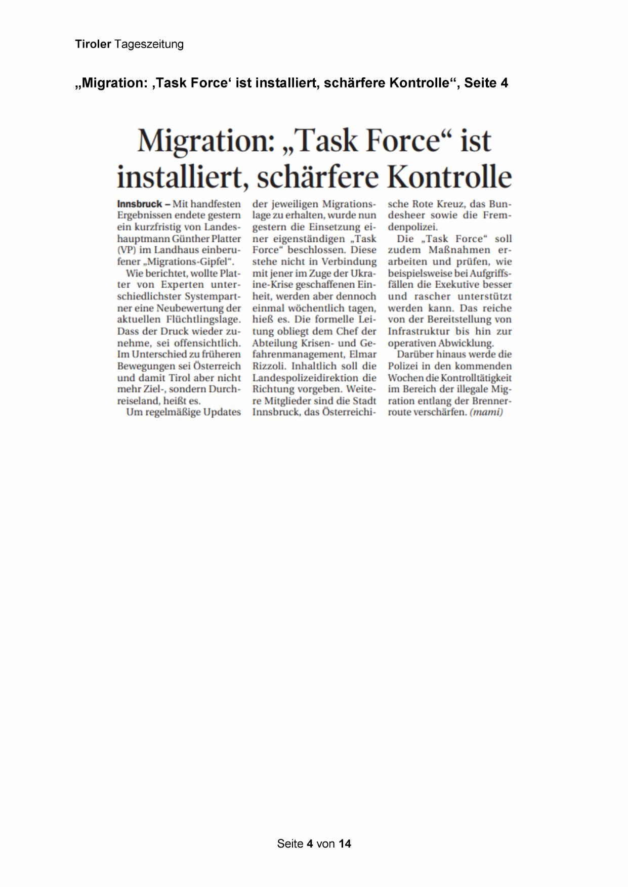 „Migration: ‚Task Force‘ ist installiert, schärfere Kontrolle“, Seite 4