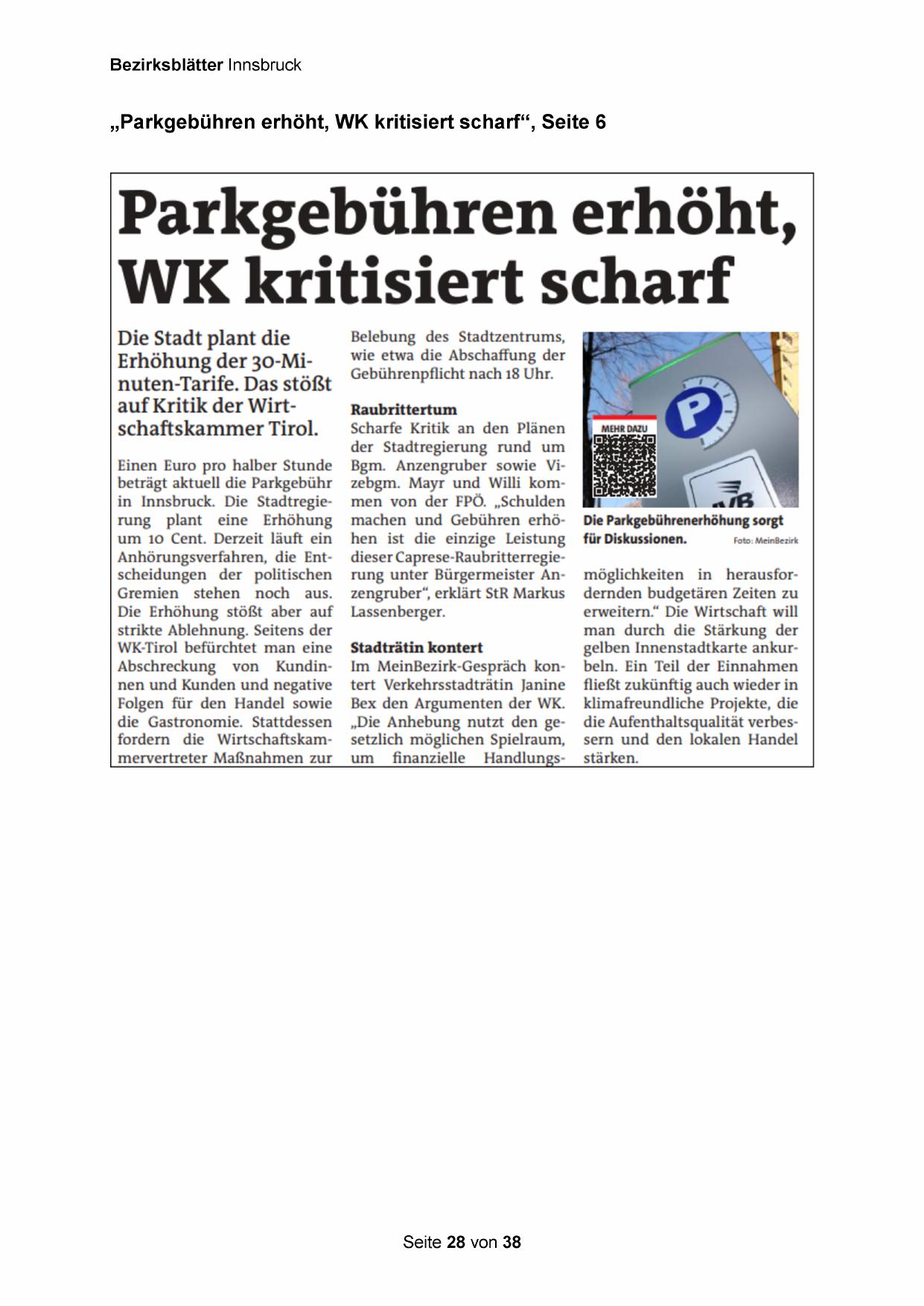 „Parkgebühren erhöht, WK kritisiert scharf“, Seite 6