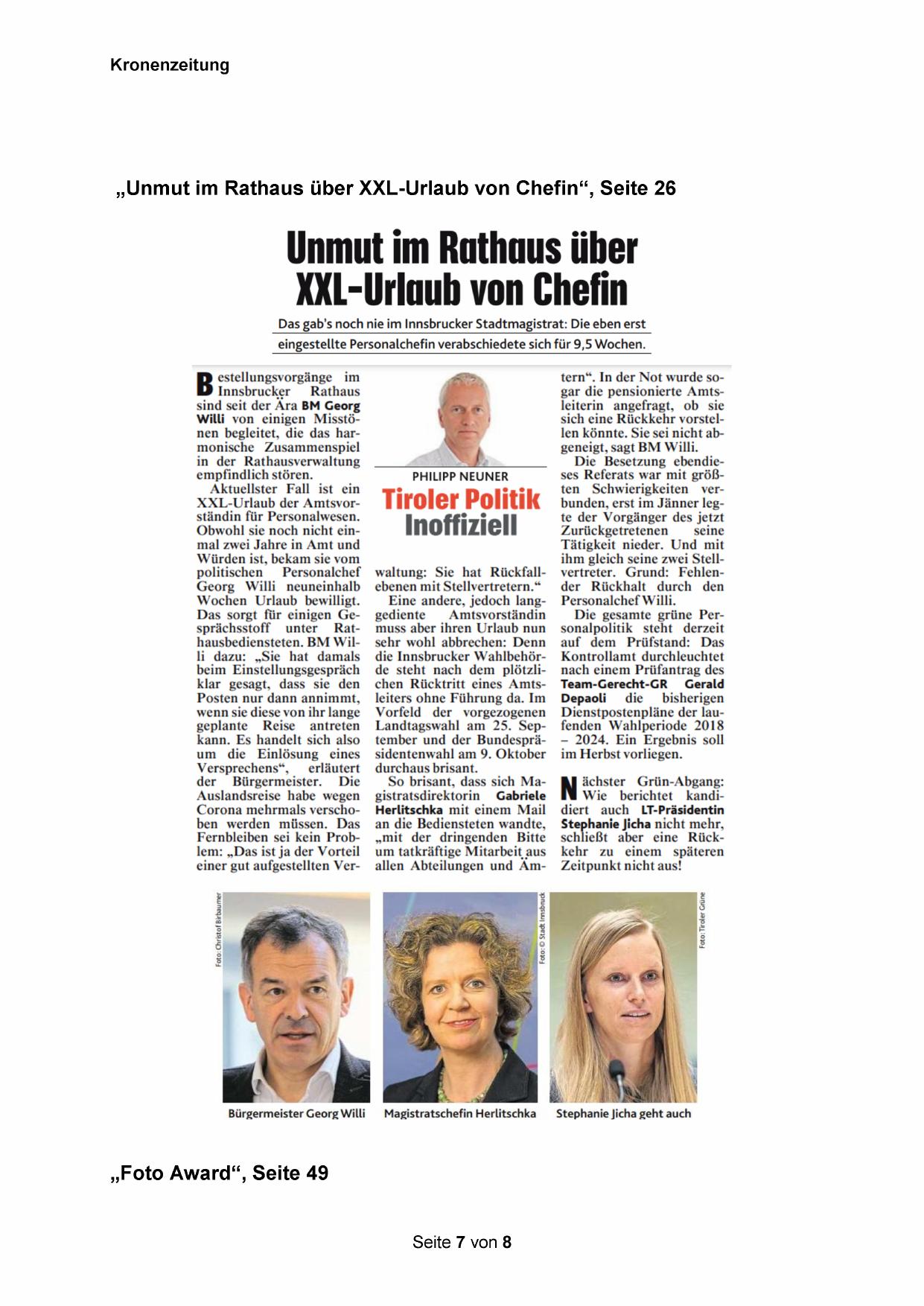 „Unmut im Rathaus über XXL-Urlaub von Chefin“, Seite 26