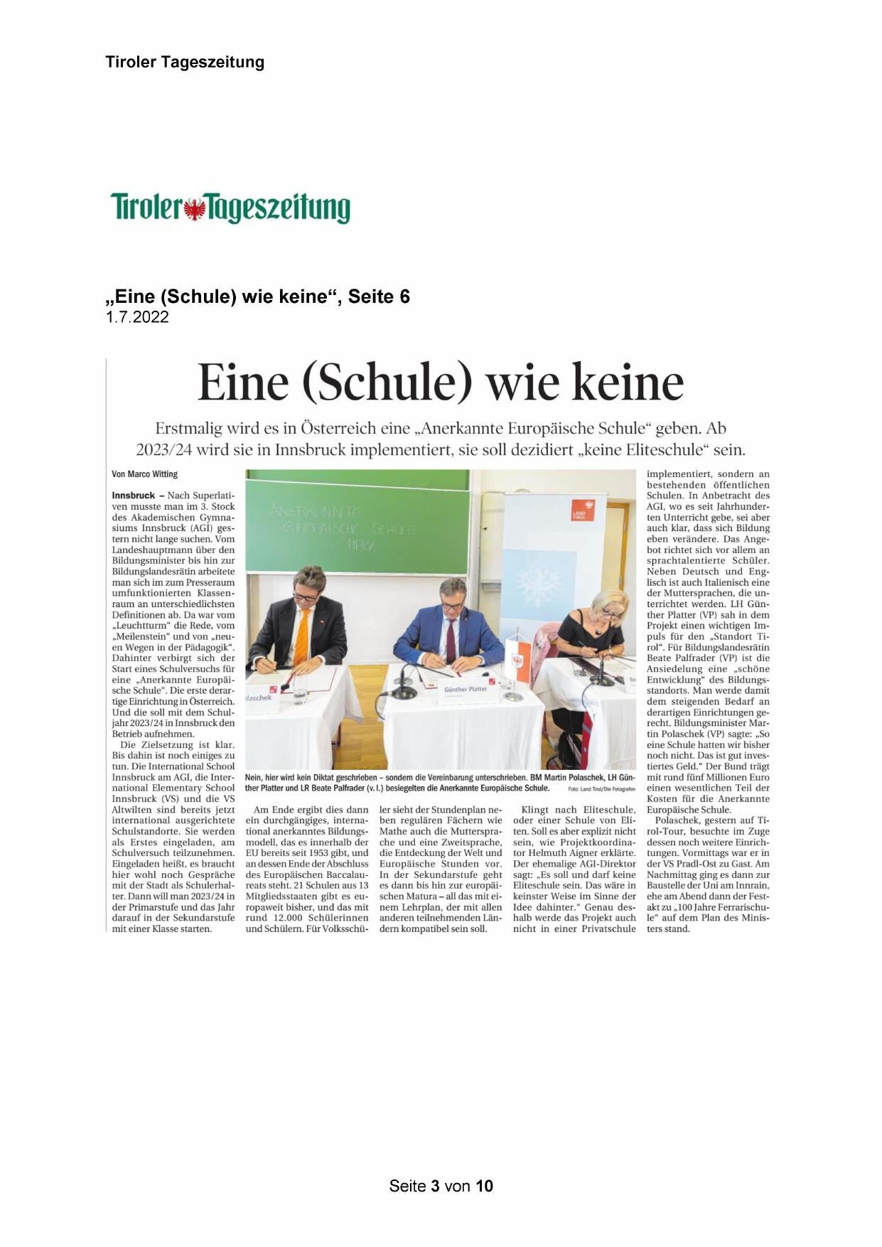 2023/24 wird sie in Innsbruck implementiert, sie soll dezidiert „keine Eliteschule“ sein.