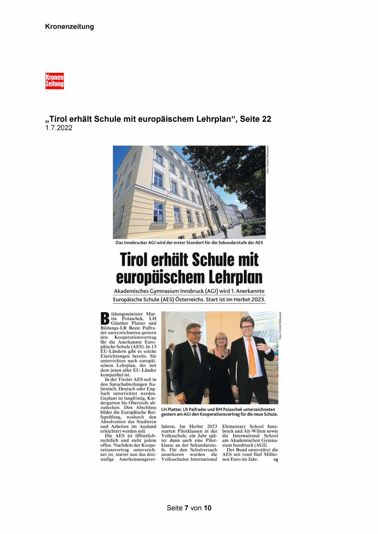 „Tirol erhält Schule mit europäischem Lehrplan“, Seite 22