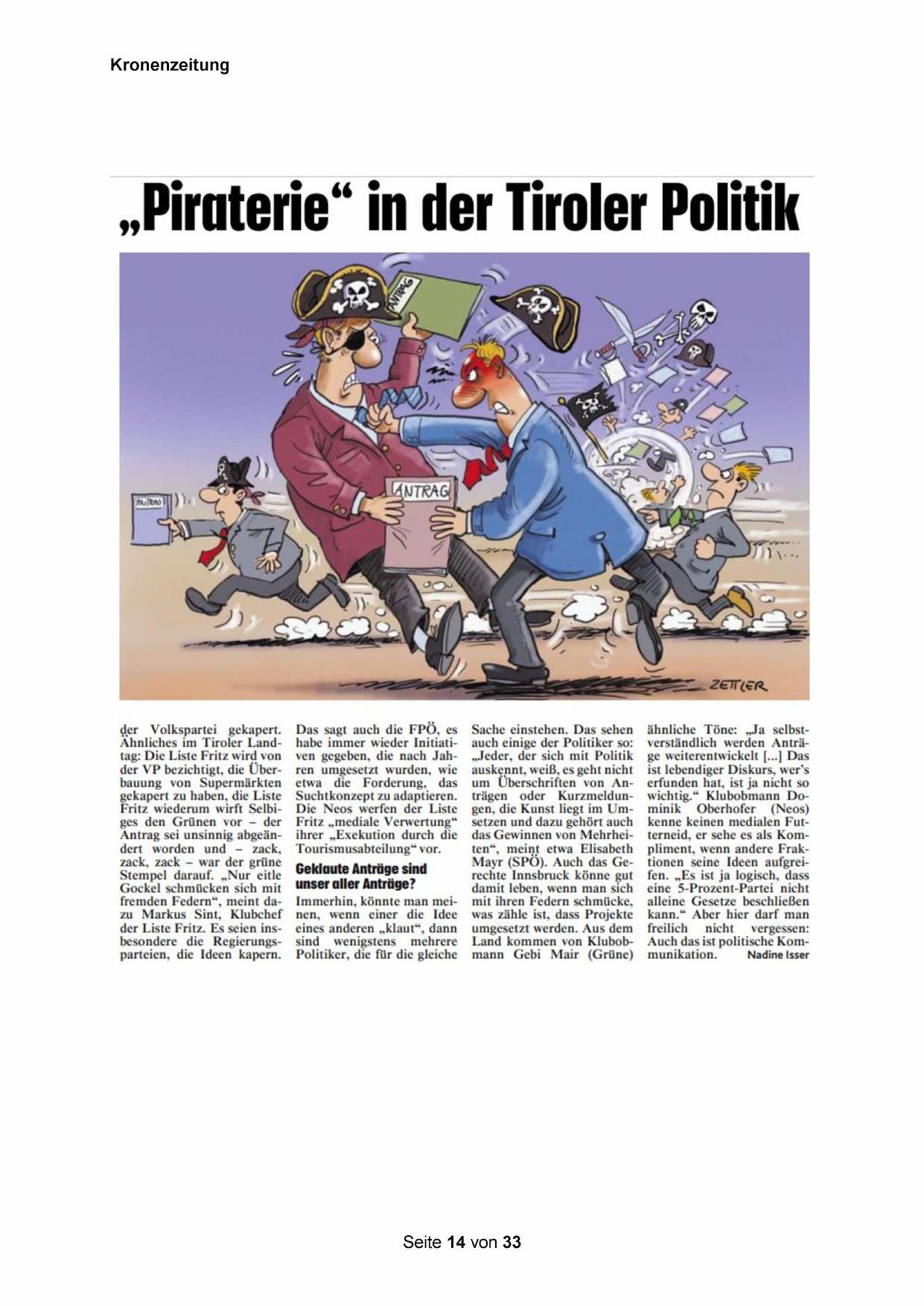 „Piraterie“ in der Tiroler Politik
