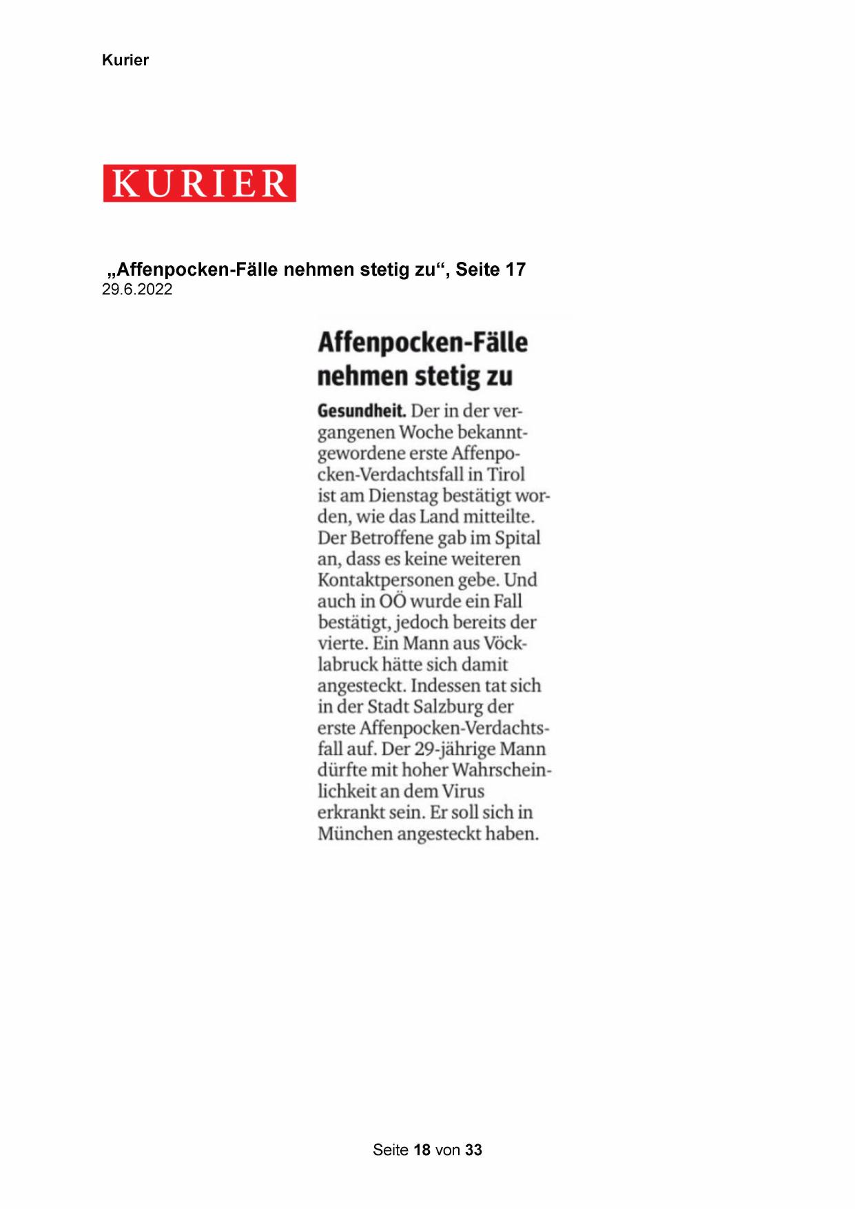 „Affenpocken-Fälle nehmen stetig zu“, Seite 17