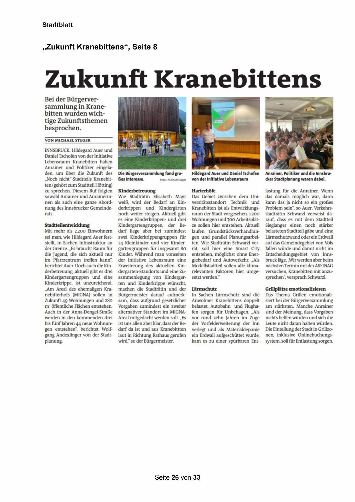 Bei der Bürgerversammlung in Kranebitten wurden wichtige Zukunftsthemen