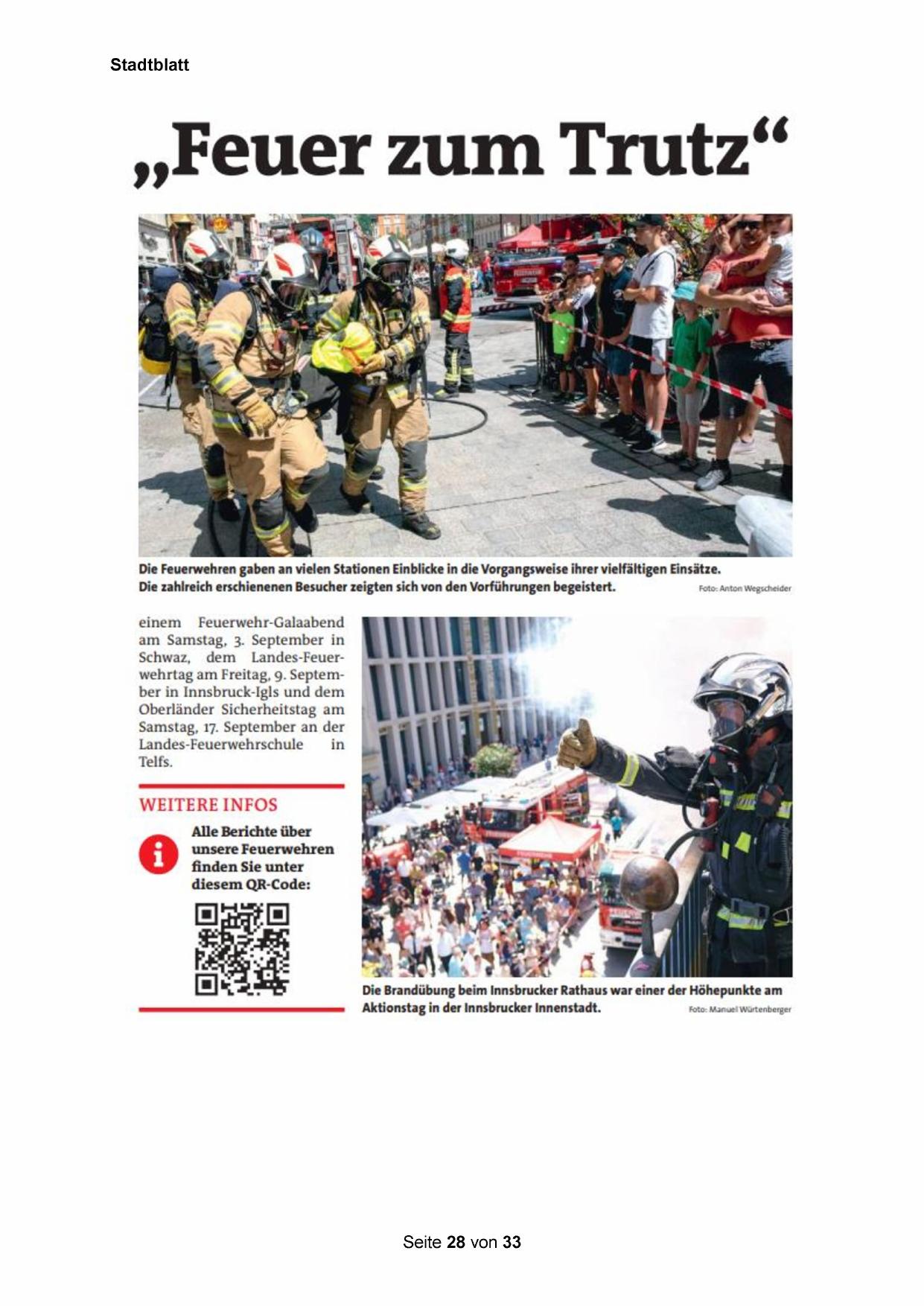 Schwaz, dem Landes-Feuerwehrtag am Freitag, 9. September in Innsbruck-Igls und dem