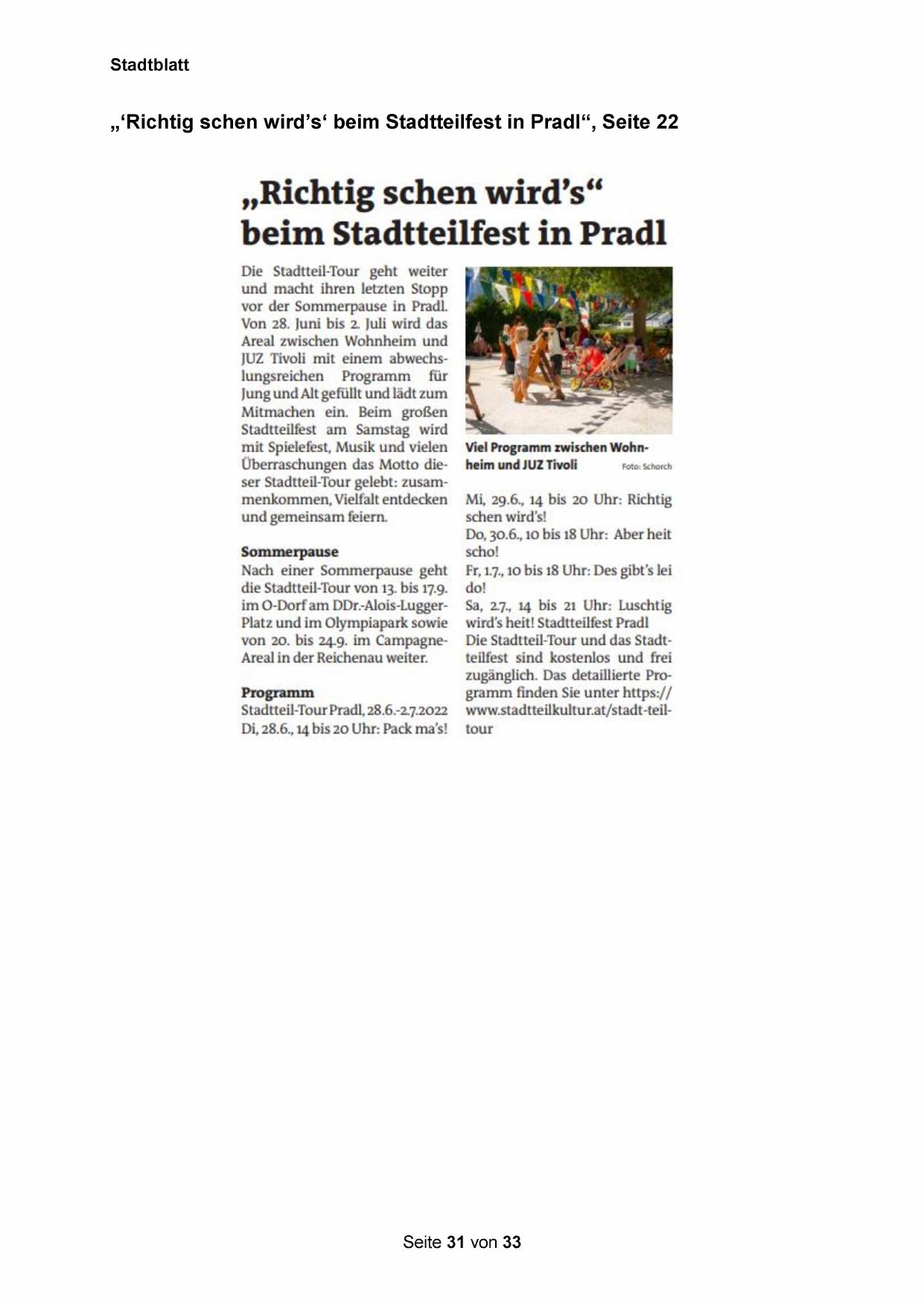 „‘Richtig schen wird’s‘ beim Stadtteilfest in Pradli“, Seite 22
