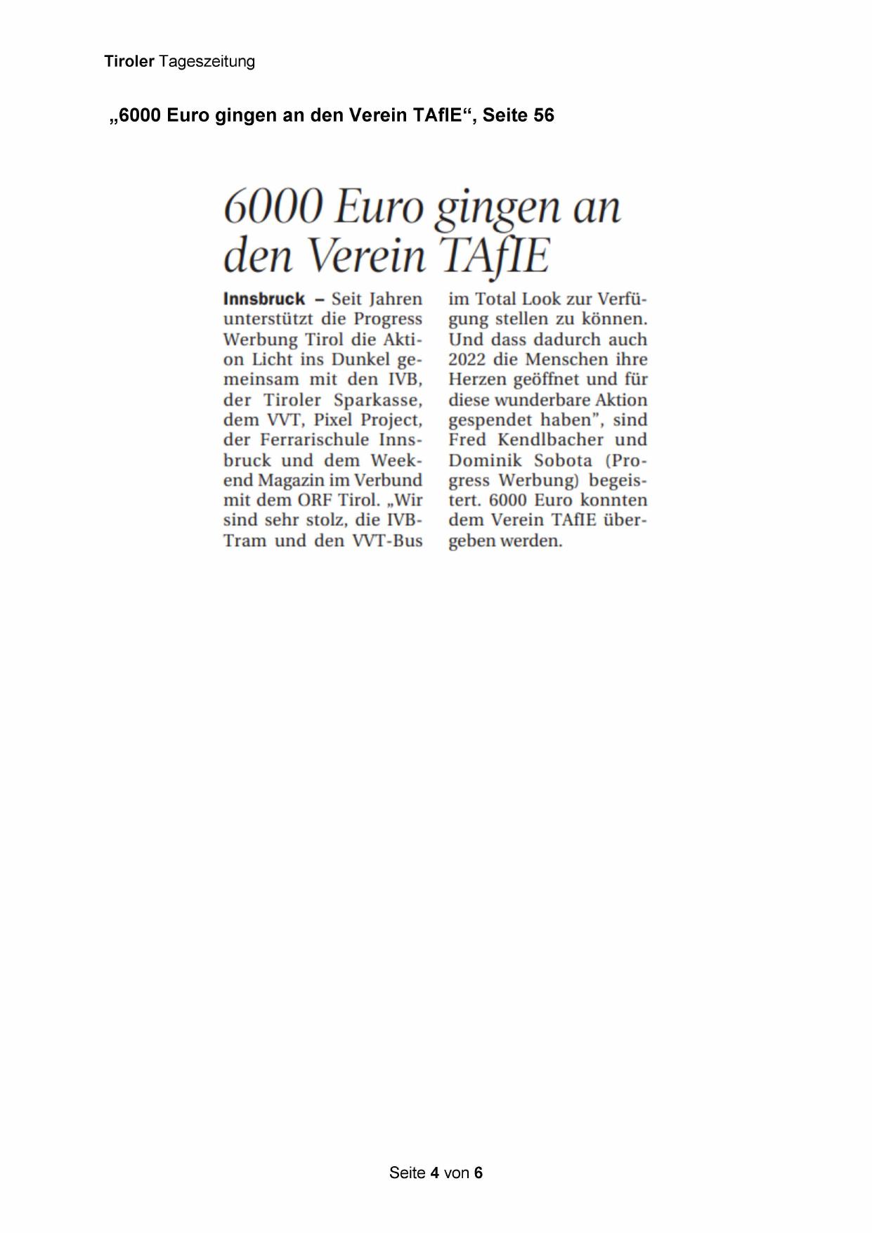 „6000 Euro gingen an den Verein TAfIE“, Seite 56
