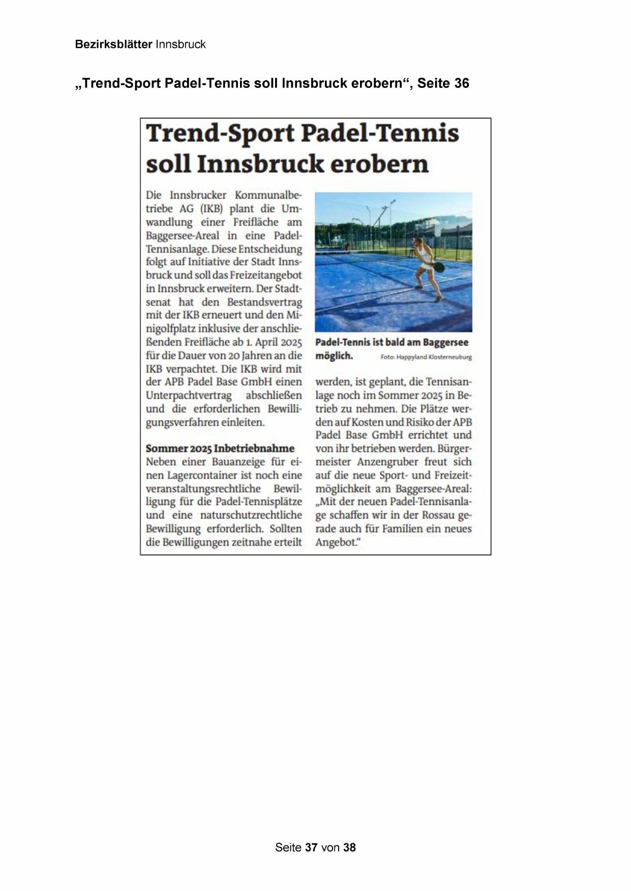 „Trend-Sport Padel-Tennis soll Innsbruck erobern“, Seite 36