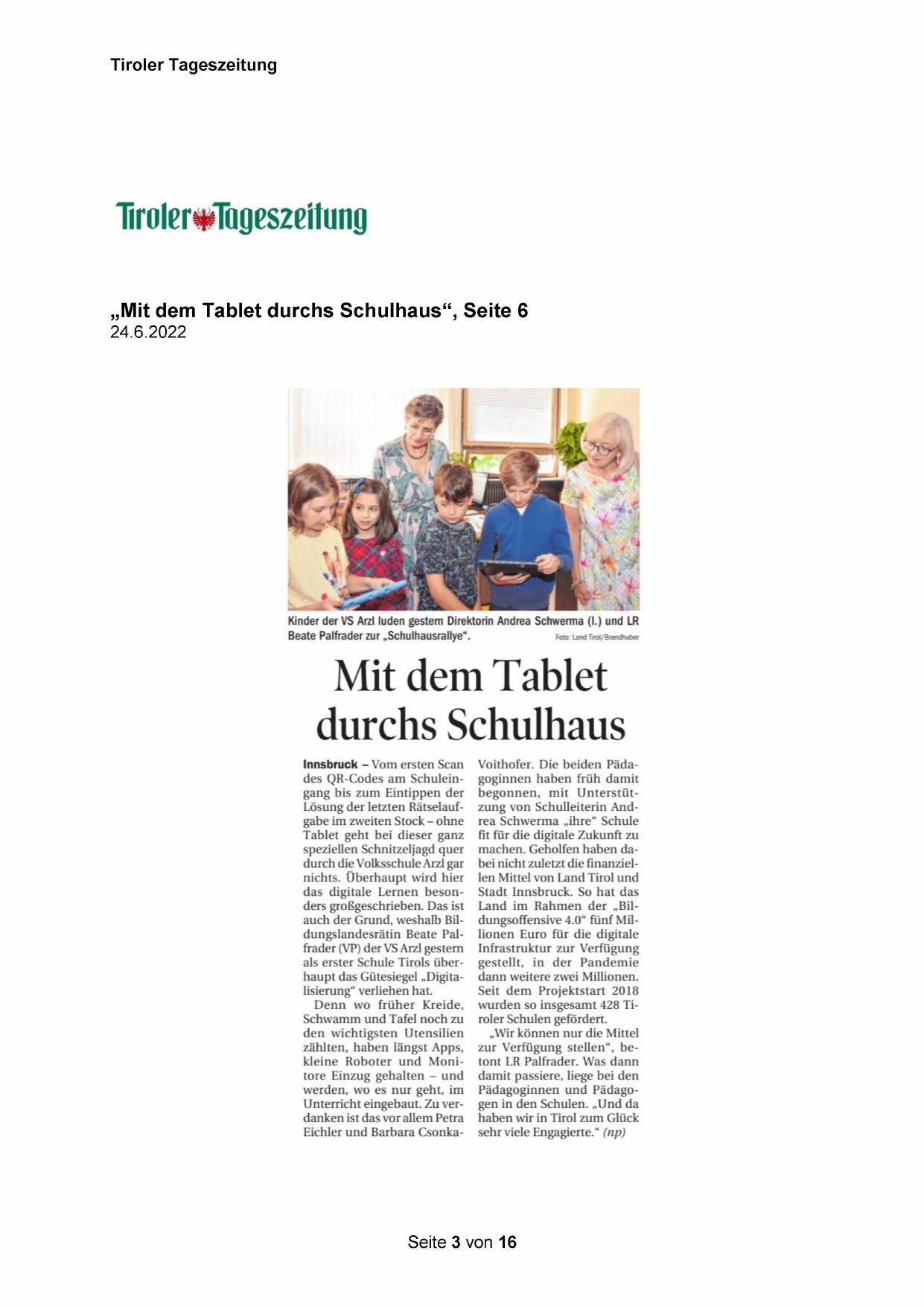 auch der Grund, weshalb Bildungslandesrätin Beate Palfrader (VP) der VS Arzl gestern